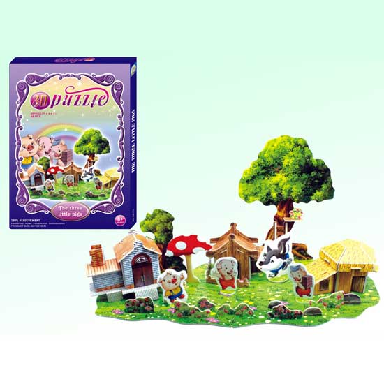 This 3D puzzle is designed in the theme of the fairy tale 'Three Little Pigs'. Players can construct the environment in which the story takes place. This fun and educational puzzle trains players' imagination too.