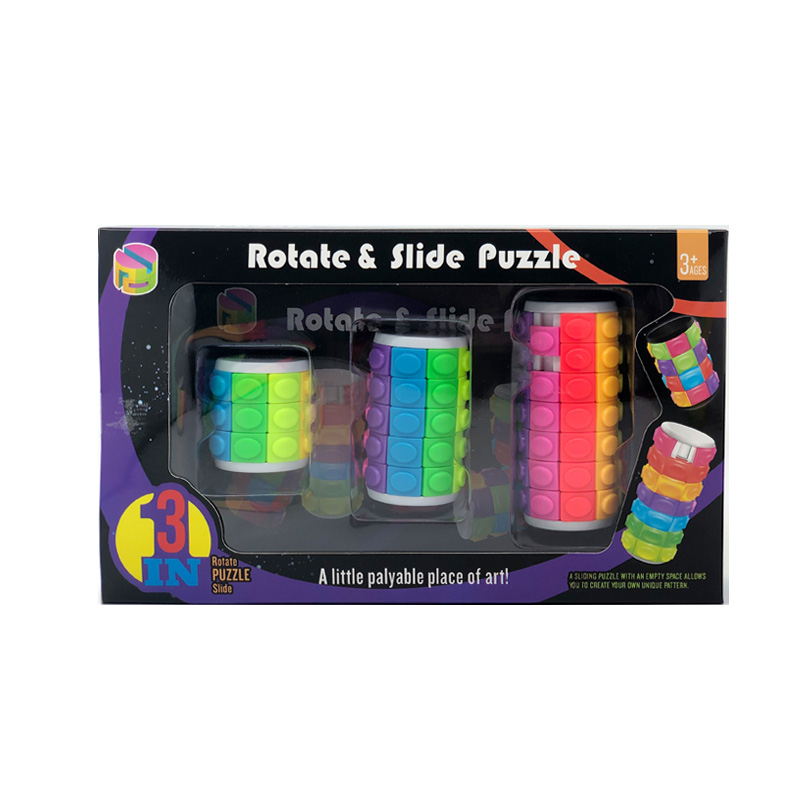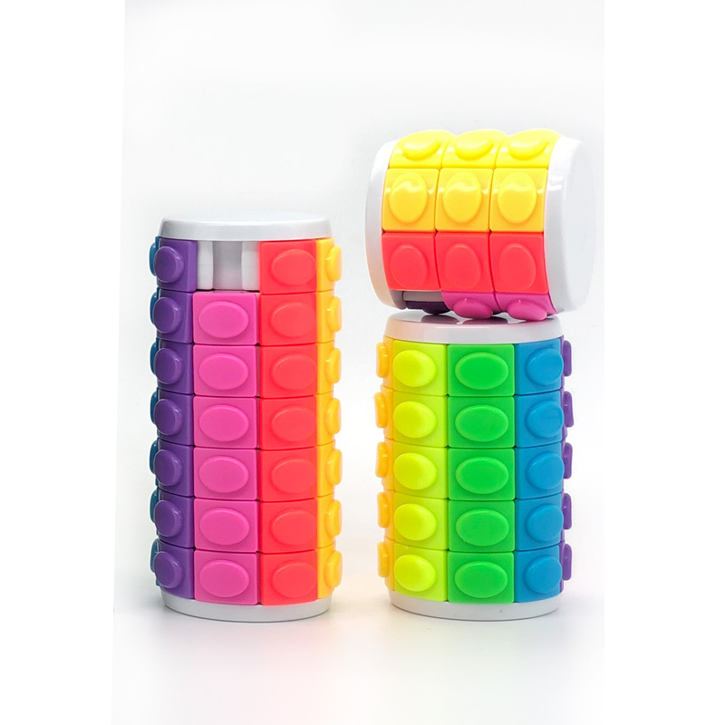 This set of 3D puzzle cube includes three rotate and slide puzzles in different sizes. They come in cylindrical shape and are designed for children to match the pieces of the same color. The puzzle can help children recognize different colors and is perfect for improving their problem solving skills.