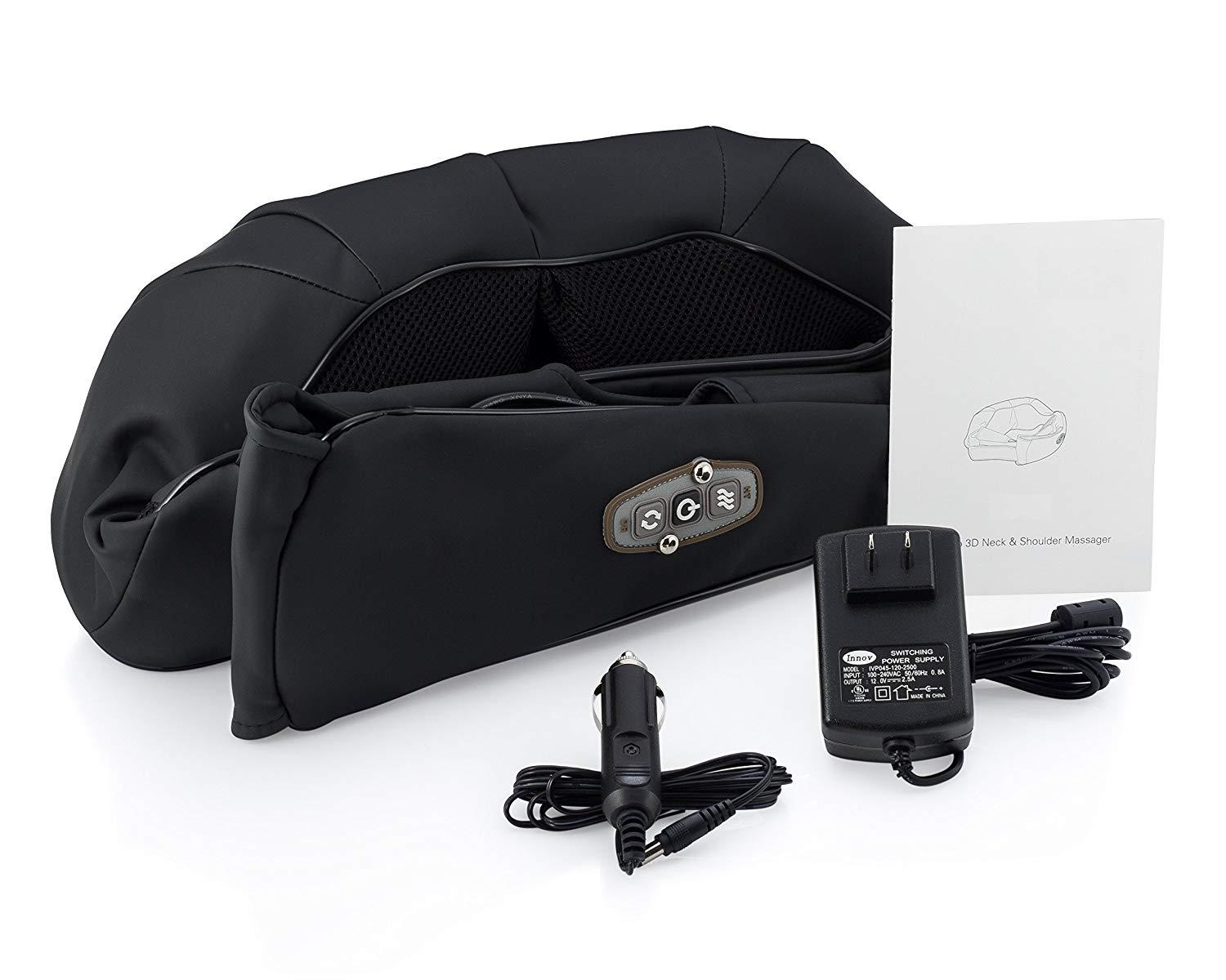 3D Shiatsu Neck and Shoulder Massage with Heat, Hand Vibration Therapy, Adjustable Intensity Pillow