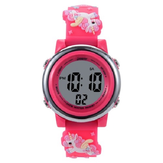 The 3D cartoon electronic watch series is primarily distinguished by its straps, which utilize 3D injection molding technology to bring cartoon patterns to life with vivid realism. The movement features a versatile electronic module equipped with functions including an alarm, date display, stopwatch, day-of-the-week indicator, and a 7-color backlight. All materials used are environmentally friendly and comply with CE and ROHS standards. With a water resistance rating of 3ATM, this watch is suitable for children to wear during activities such as handwashing and water play.