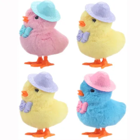 4.3 inch Easter Jumping Chick in Hat Plush Toys Easter Bonnet Egg Hunt Toy Basket Fillers Gifts Wind Up Toy Chick