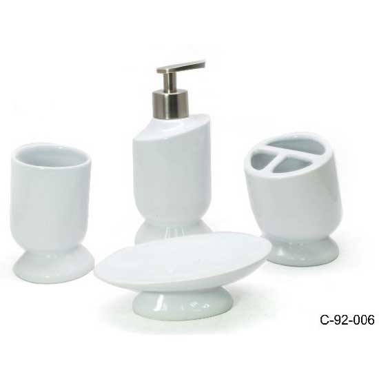 The four-piece bath set comes in an elegant white finish with delicate bottoms. They are well made with exquisite craftsmanship and attention to details. This smooth, decent bath set will never be out of style.