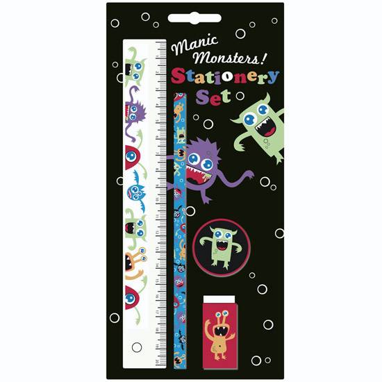 The 4-piece stationery set includes a ruler, a pencil, an eraser and a pencil sharpener. They are well designed with excellent quality. This 4-piece stationery set is a great choice of gifts.