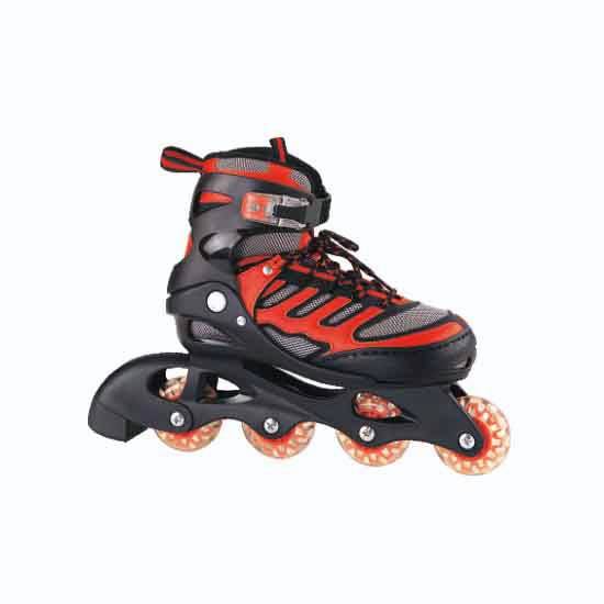 The pair of novel inline skates features a modern boot design that adds boldness to your look. The 4 wheels on each skate are finely embellished with fancy red and white patterns, radiating whimsical effects when turning fast. It is also equipped with a sturdy frame, brake, upper and secure fastening, which provide great fun with paramount protection.