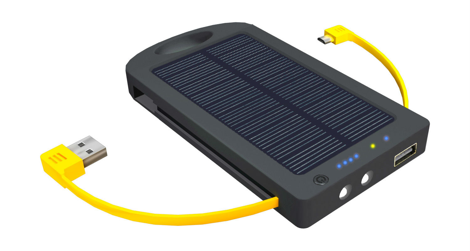 Solar Charger Capacity: 4000mAh Battery Type: Li-Polymer Input: 5V/1A Output: 5V/1A, 5V/2.4A Self Charging Time: 5 Hours