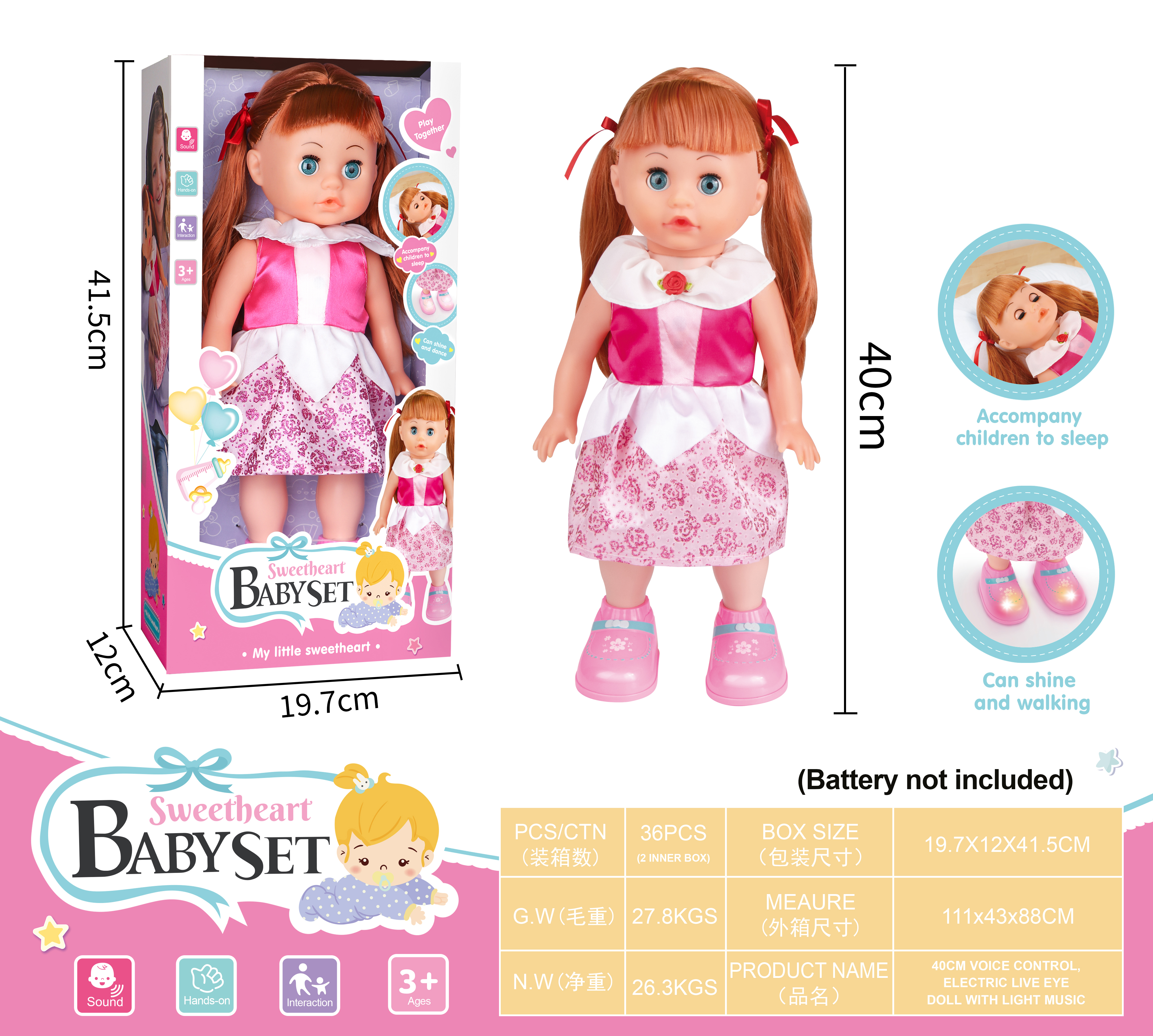 40CM BATTERY OPERATED WALKING DOLL