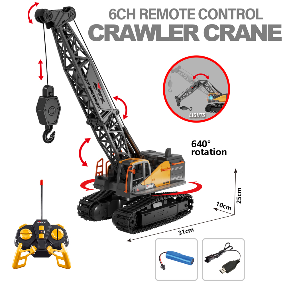 | Function | 6-channel remote-controlled crawler crane/forward/backward/left/right turn/hook release/retraction//lifting arm can be manually controlled to rise and fall |