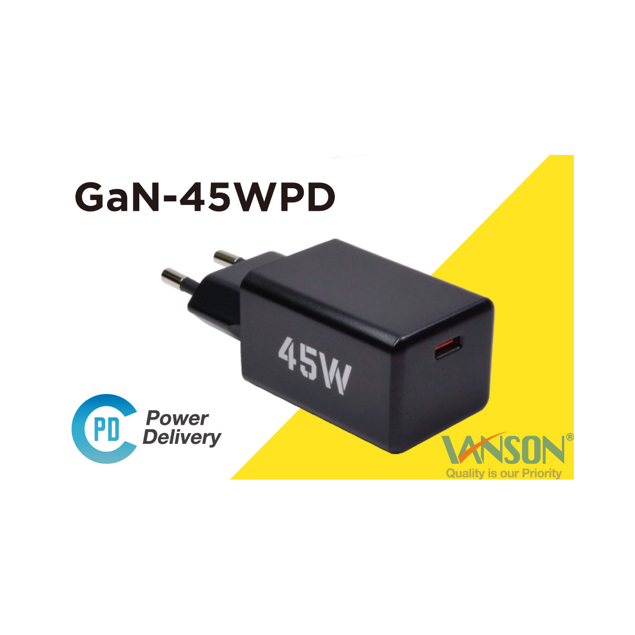 * Support GAN technology, Power Delivery(PD) specs, recharges upto 45W USB-C enabled devices