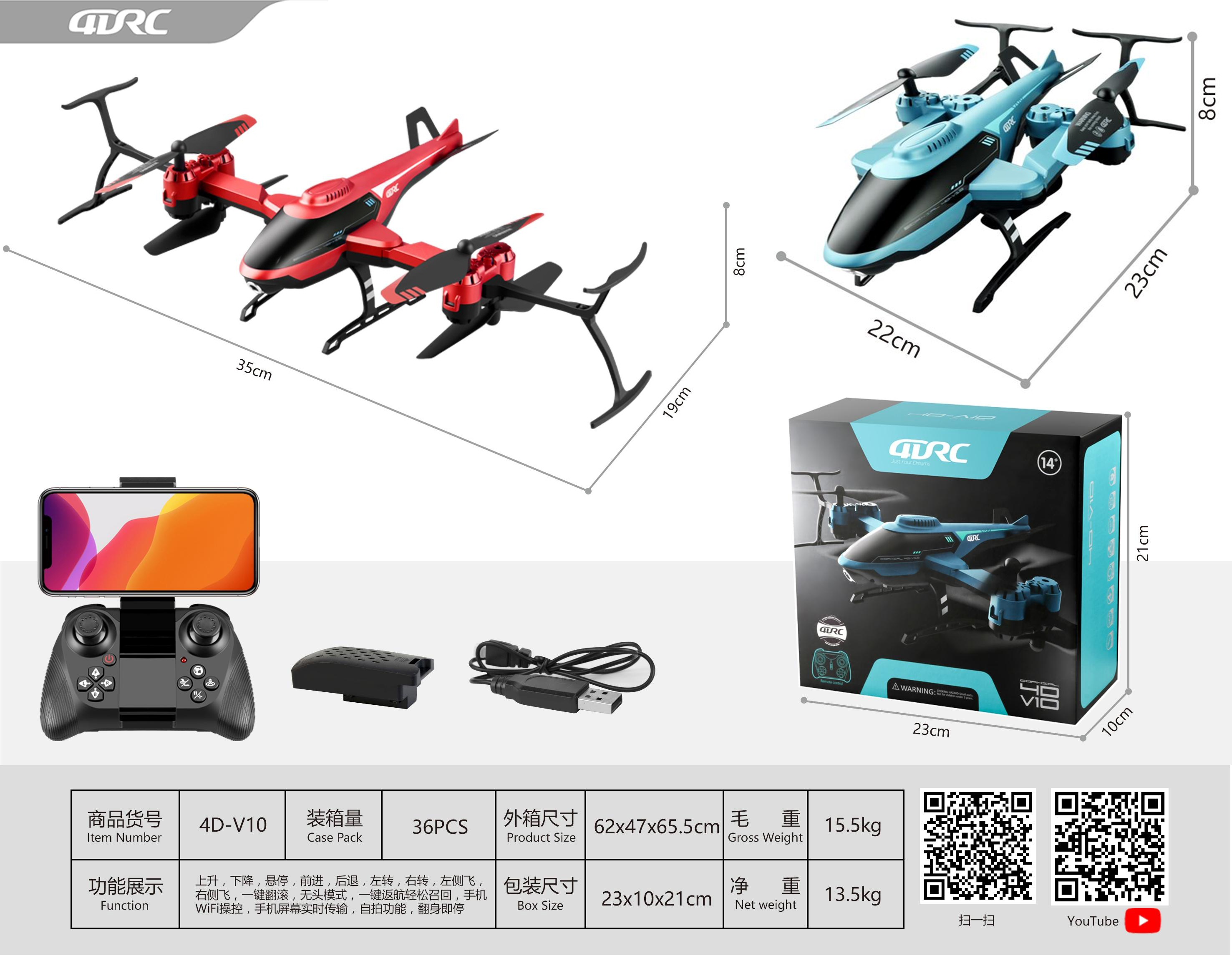 Function: One key take-off/landing, Forward/backward, Turn left/right, Left/right side-flying, Ascent/descent, Altitude hold, Auto hover/flip, Headless mode, Roll over to stop. (Only Available for Camera Option, WiFi camera with selfie, APP FPV real time transmission)