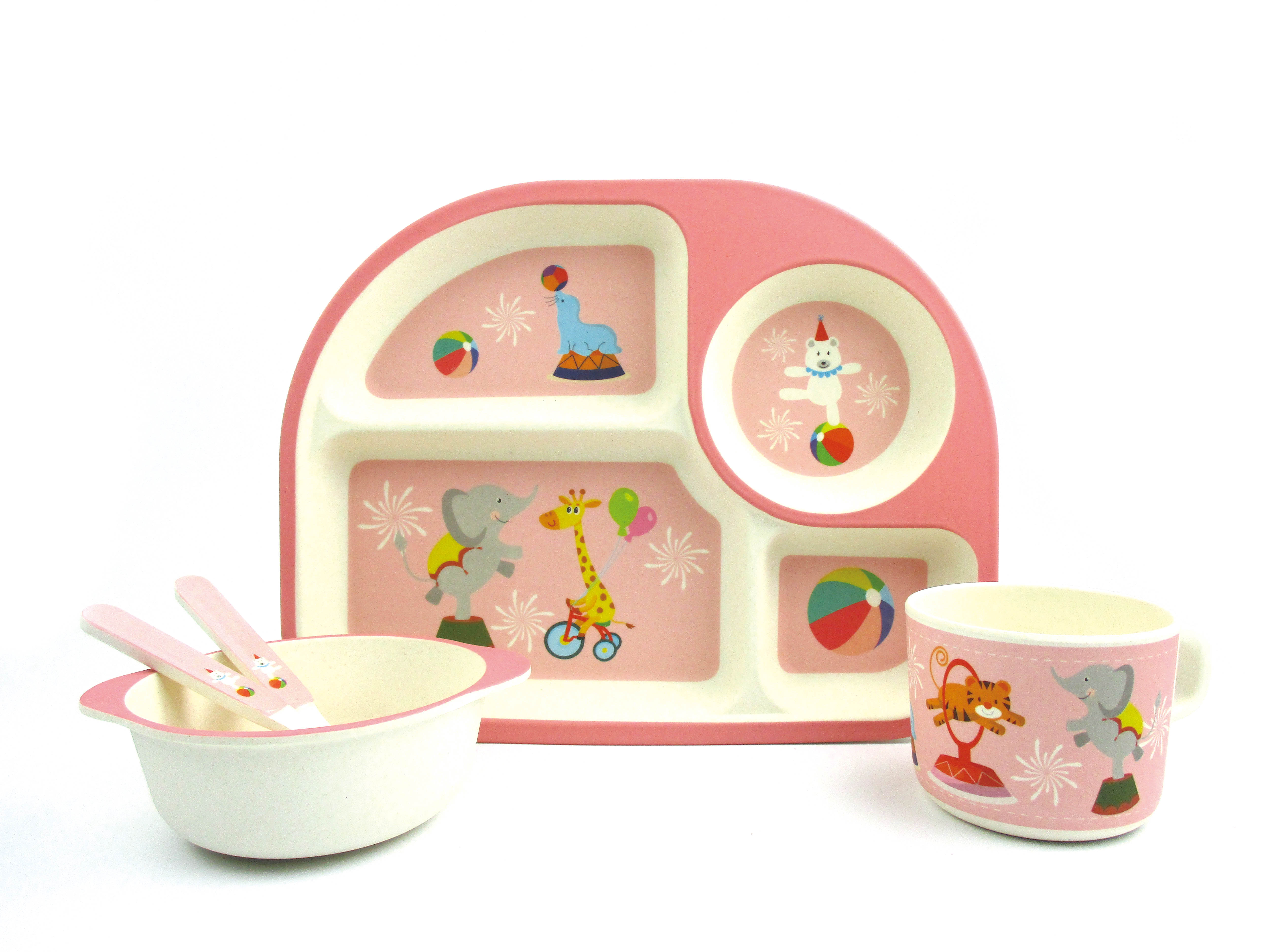 Our 5-piece dinnerware set is eco-friendly and made from plant fibers.