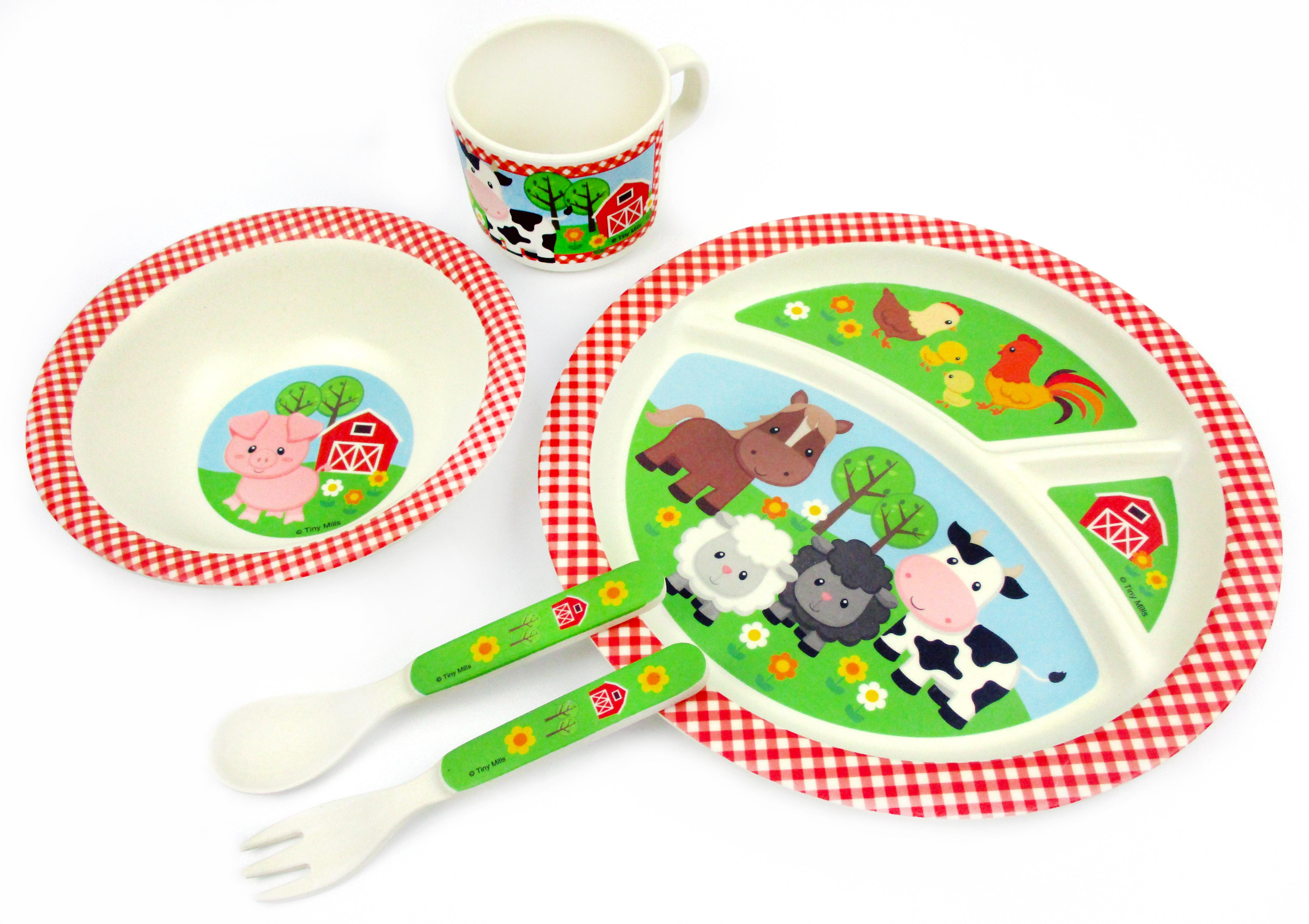 The dinnerware set is non-toxic and dishwasher safe so makes preparing meals and clean up so easy!