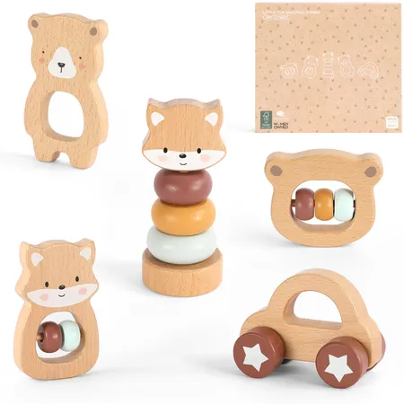 5 in 1, Baby Fox & Bear Rattle Play Set (Brown)