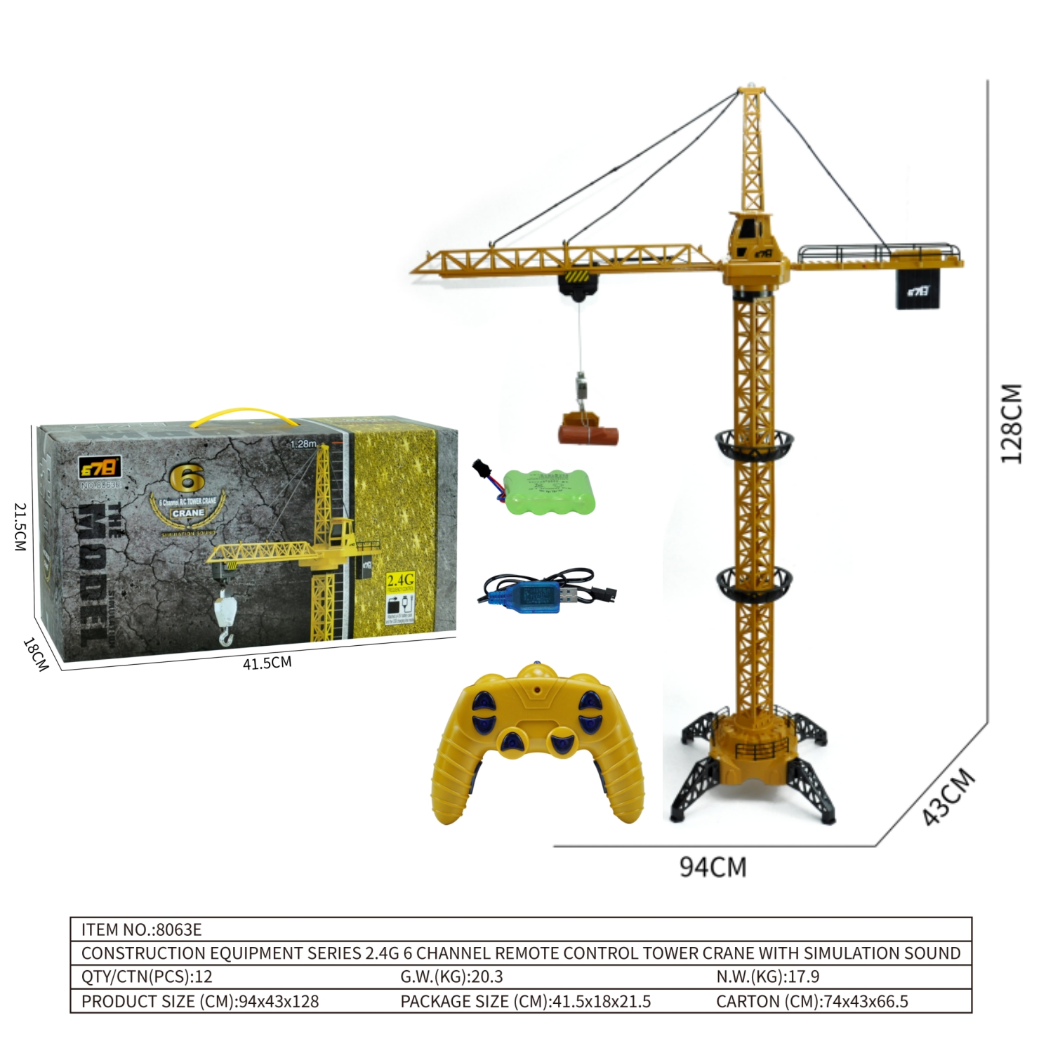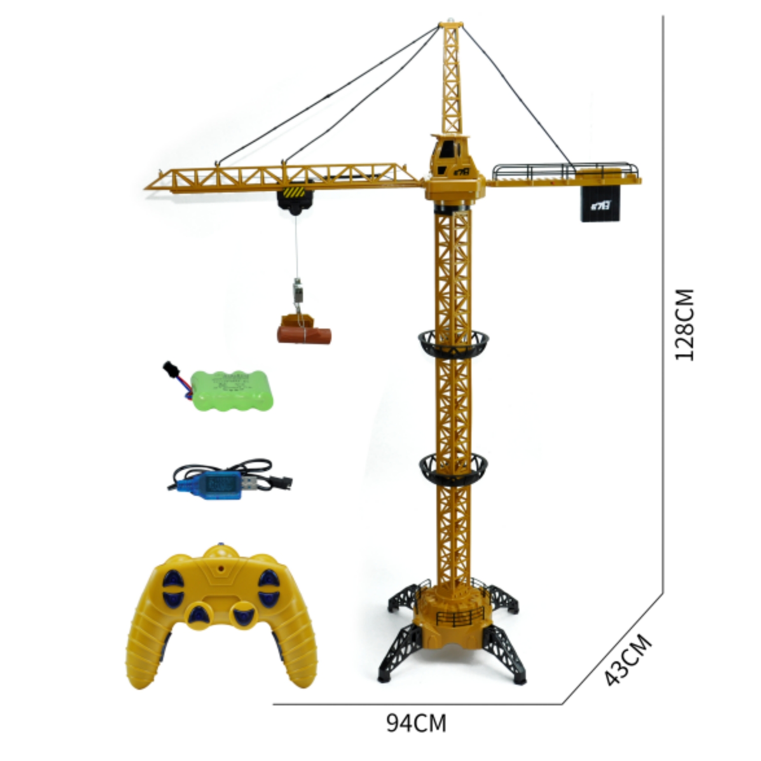 tower crane*1, remote controller*1, bucket*1, 4.8V rechargeable battery*1, USB charging cable*1