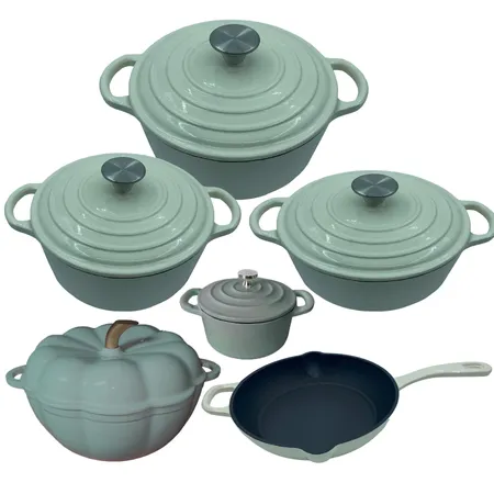 6 pcs enameled cast iron cookware set, including mini cocotte, 20cm, 26cm deep pot, shallow pot, pumpkin shape Dutch oven, Frying Pan