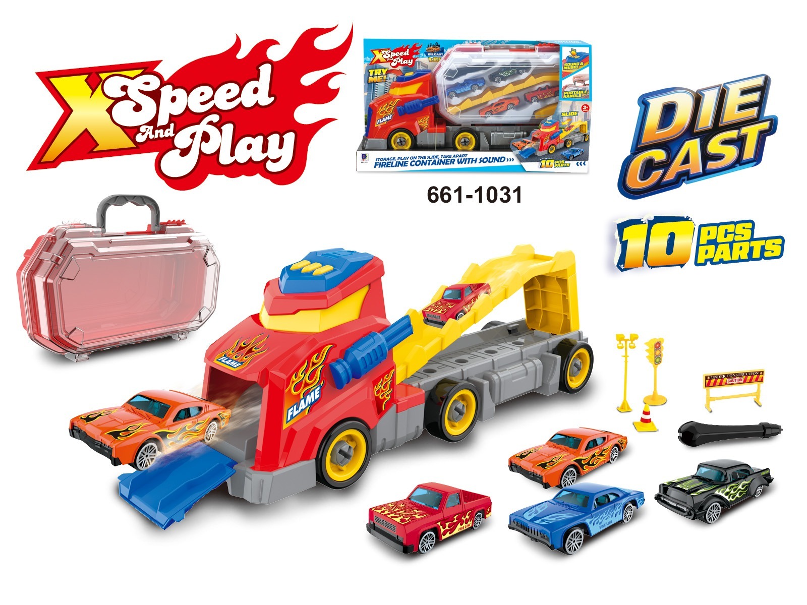 661-1031 MONSTER CONTAINER TRUCK WITH FOUR ALLOY MUSCLE CAR SLIDE RAIL SETS