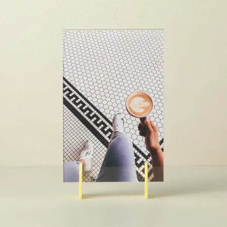 Simple modern frame with two legs to hold up a photo. The photo can be displayed in both portrait and landscape formats. Available in three sizes – 4x4”, 4x6” and 5x7”.