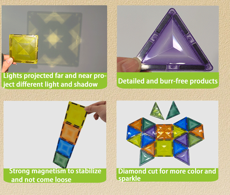The Products are strictly made of environmentally friendly materials. They are safe, non-toxic, crystal clear, with strong magnetism, never demagnetizing and harmless to human body. A variety of product packages and ideas can easily meet the needs of children of most ages.