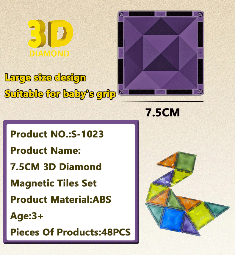 7.5CM Diamond Magnetic Tiles Set- 48PCS