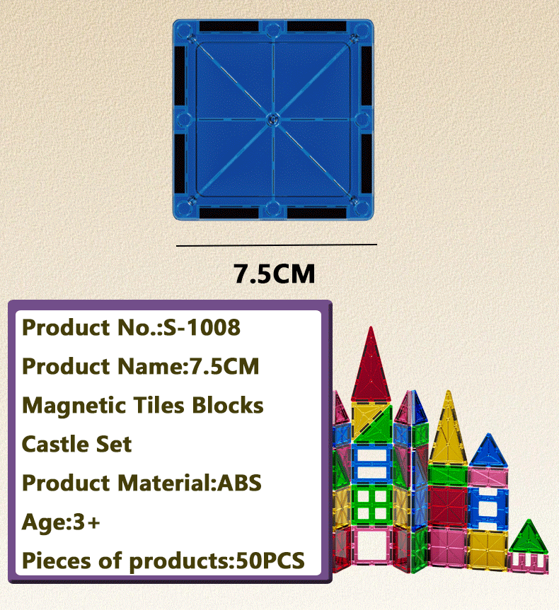 7.5CM Magnetic Tiles Set- 50PCS
