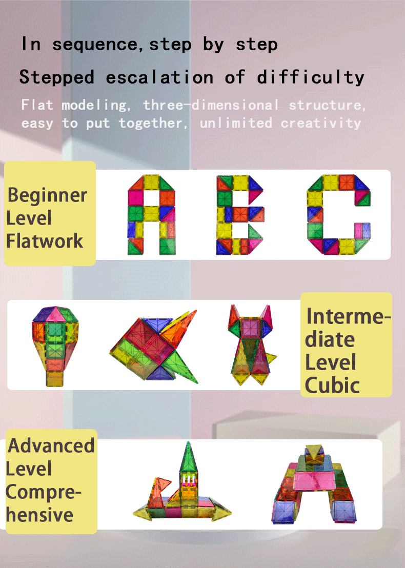 ♥ SMART POCKET magnetic tiles upgrade 2D space to 3D space, so that children can learn in the process of playing, and guide children to try to think and develop their logical thinking from multiple perspectives. Different combinations of shapes can produce different effects.