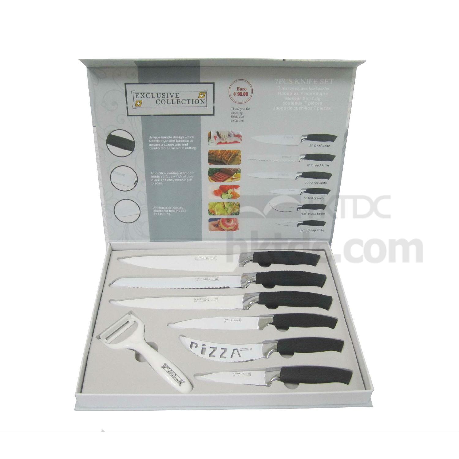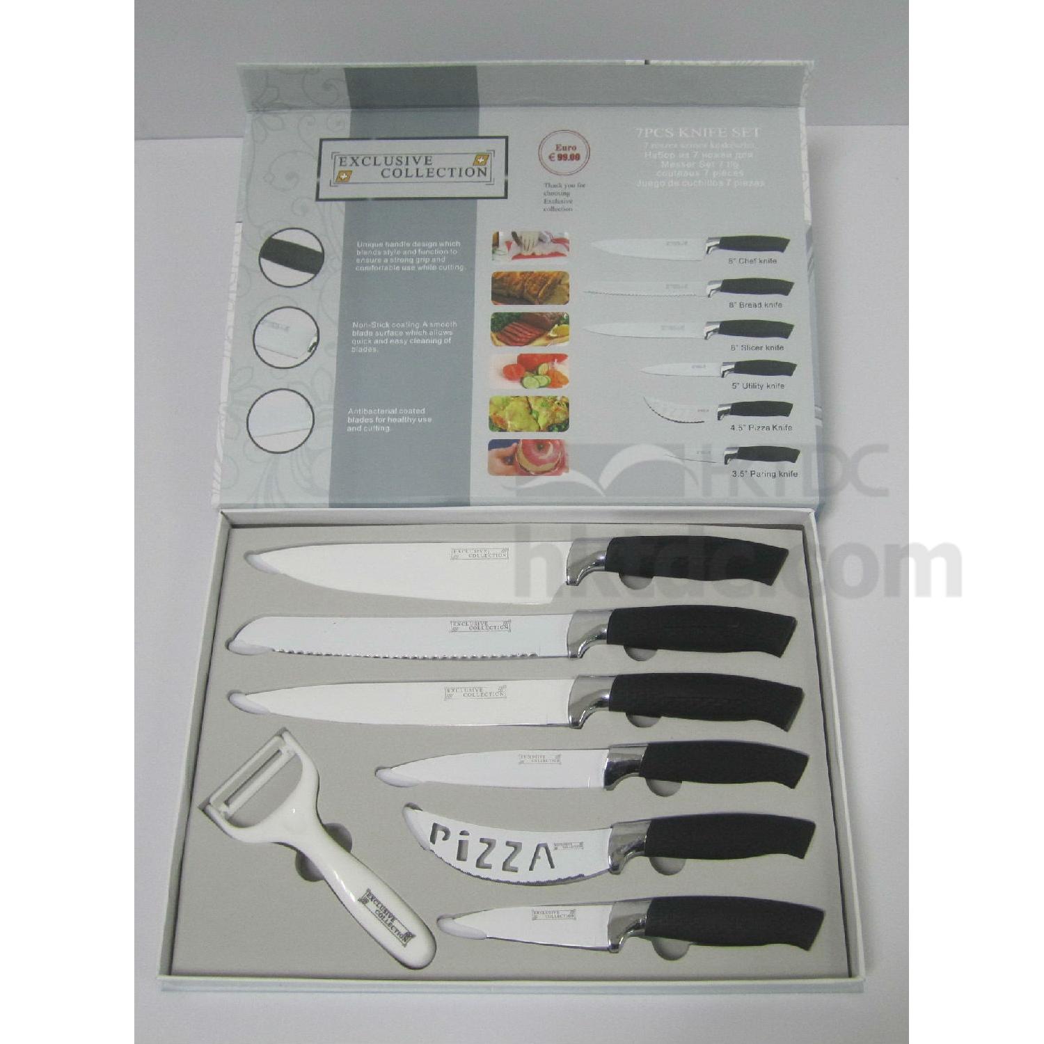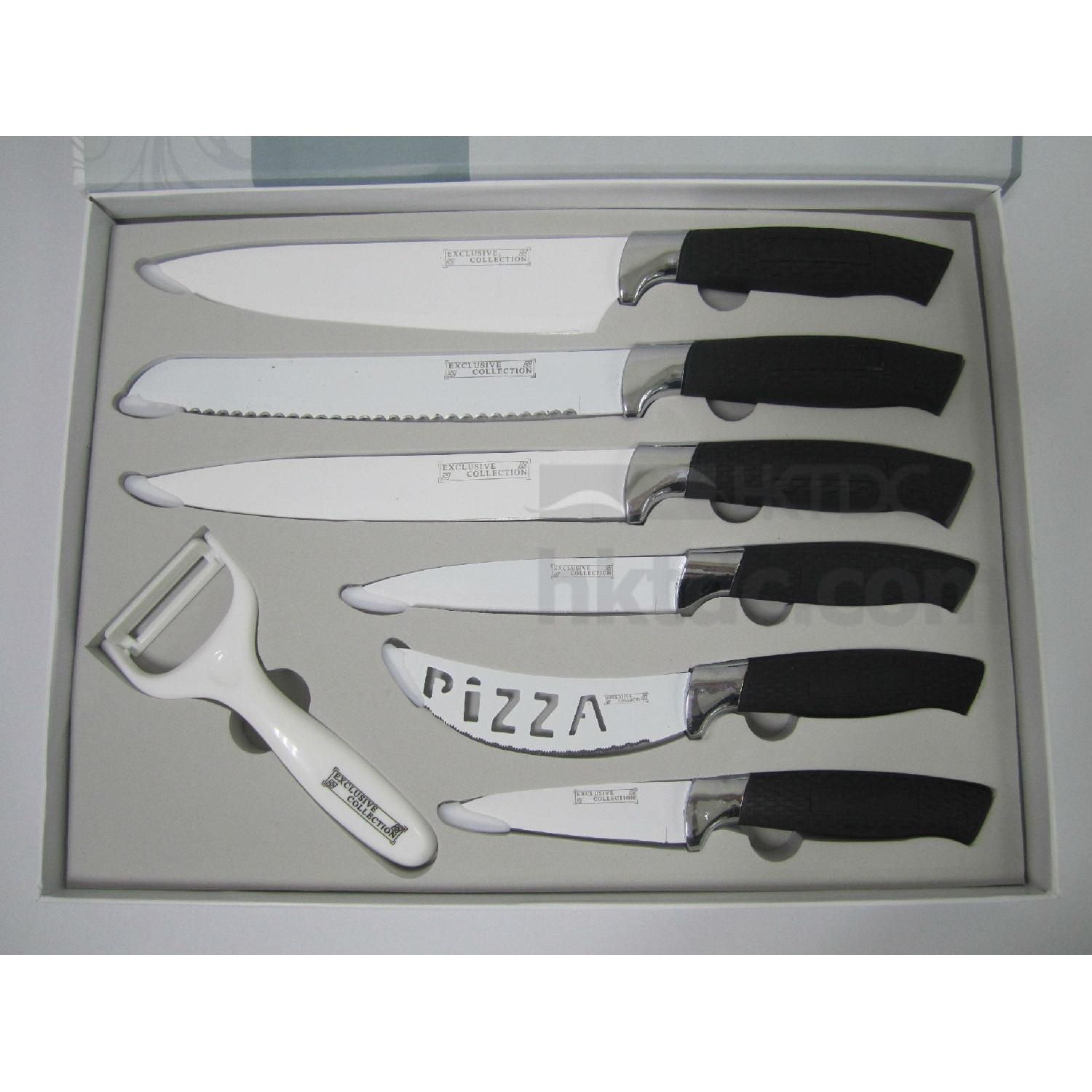 7pcs kitchen knife set with non-stick coating made of best quality stainless steel,fresh PP+TPR handle,color box packing,each set include following coponents: