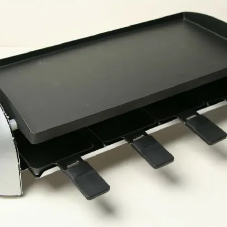 Die cast aluminium grill plate with Non-stick coating; Stainless heating element; Variable heat control with light indicator; Stainless reflector plate; 8 x small pan with non-stick coating; Cool-touch end panels; Non-slip feet;