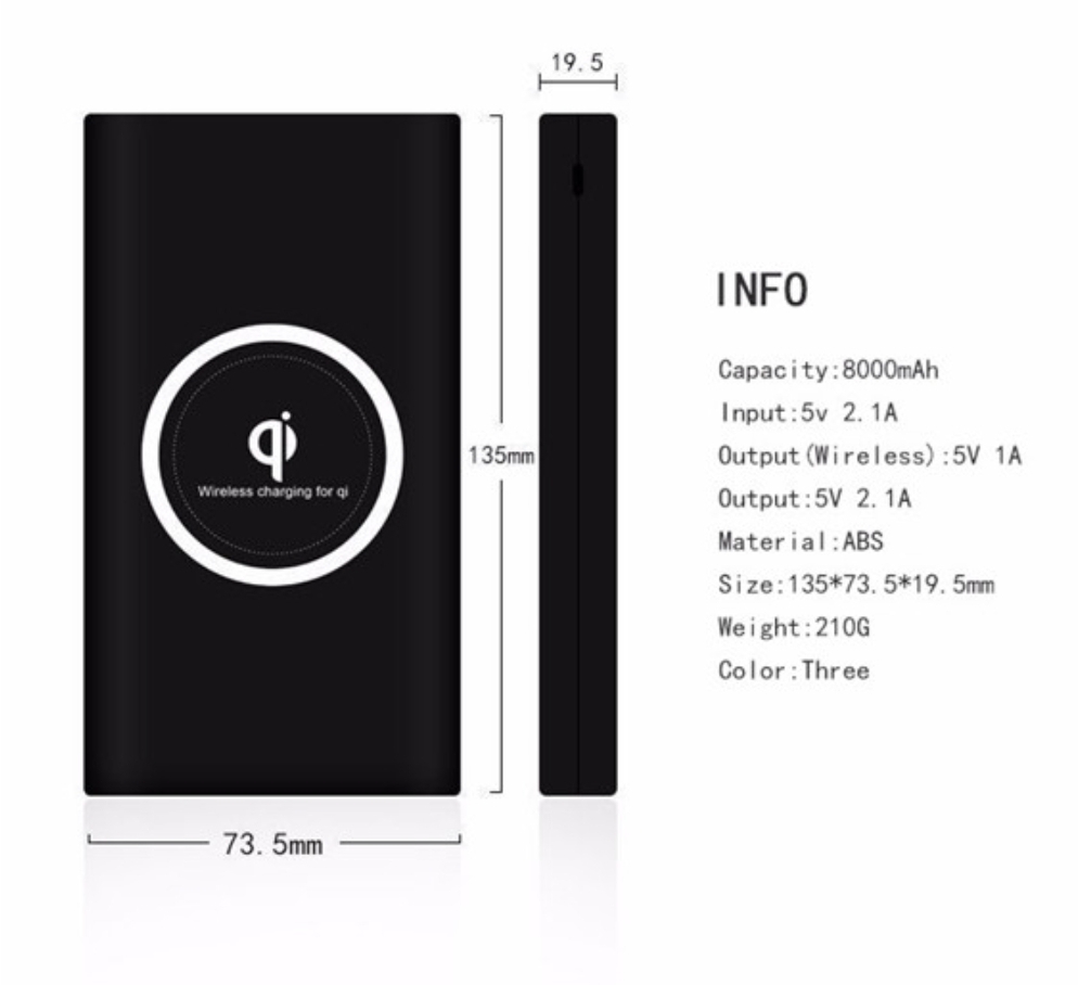 8000mah ABS Wireless Charger Qi Power Bank