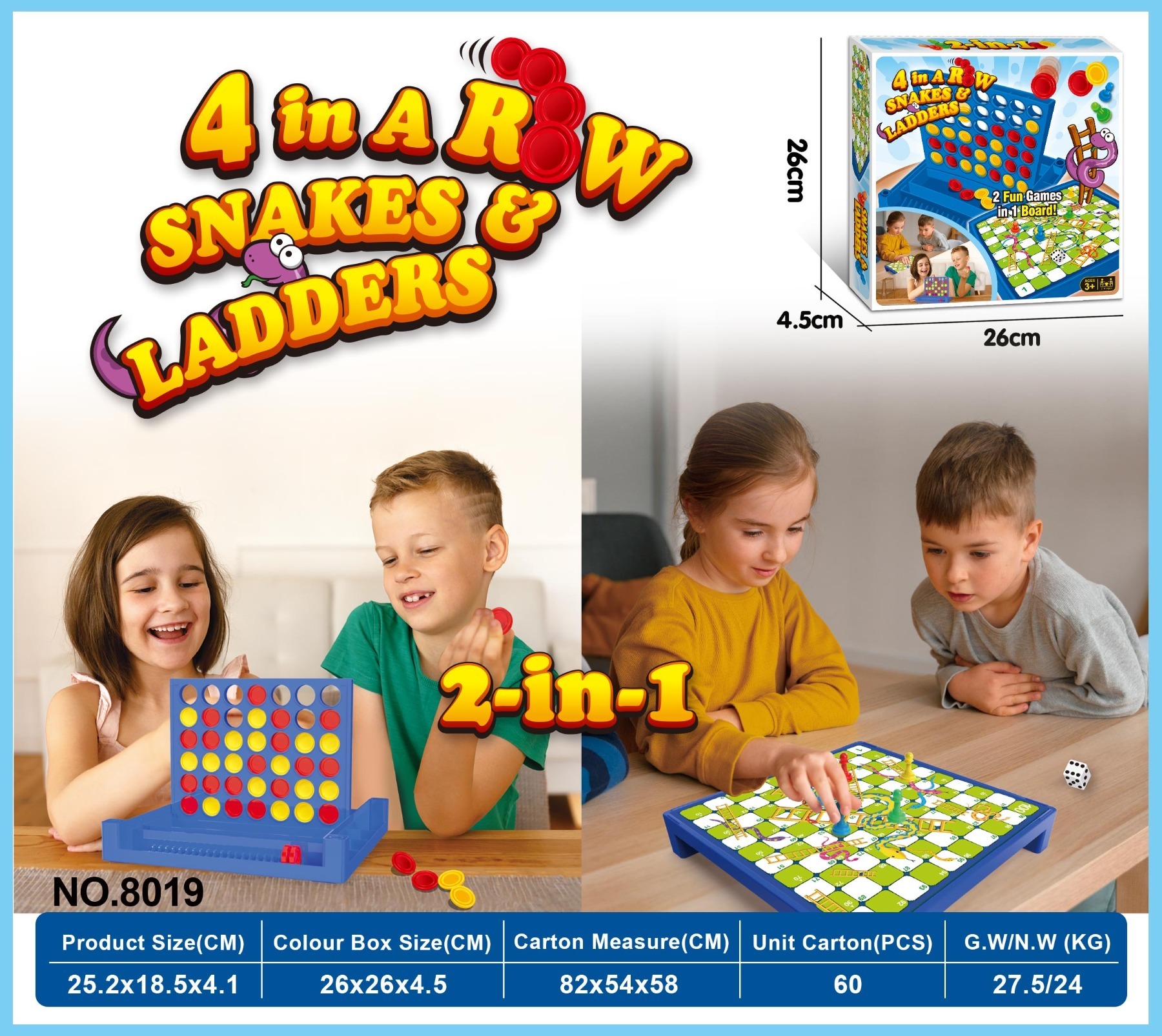 8019 FIVE-IN-A-ROW SNAKES & LADDERS 2 IN ONE