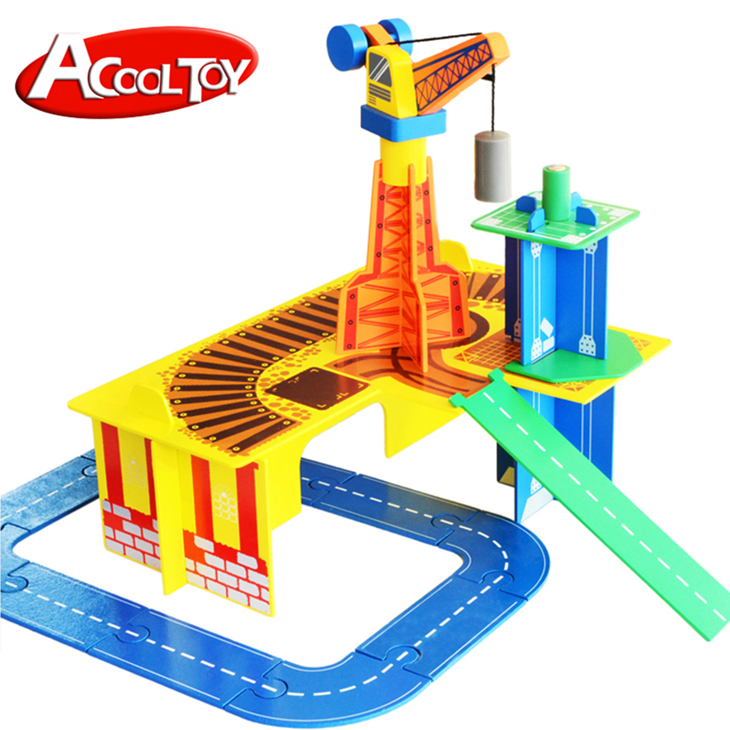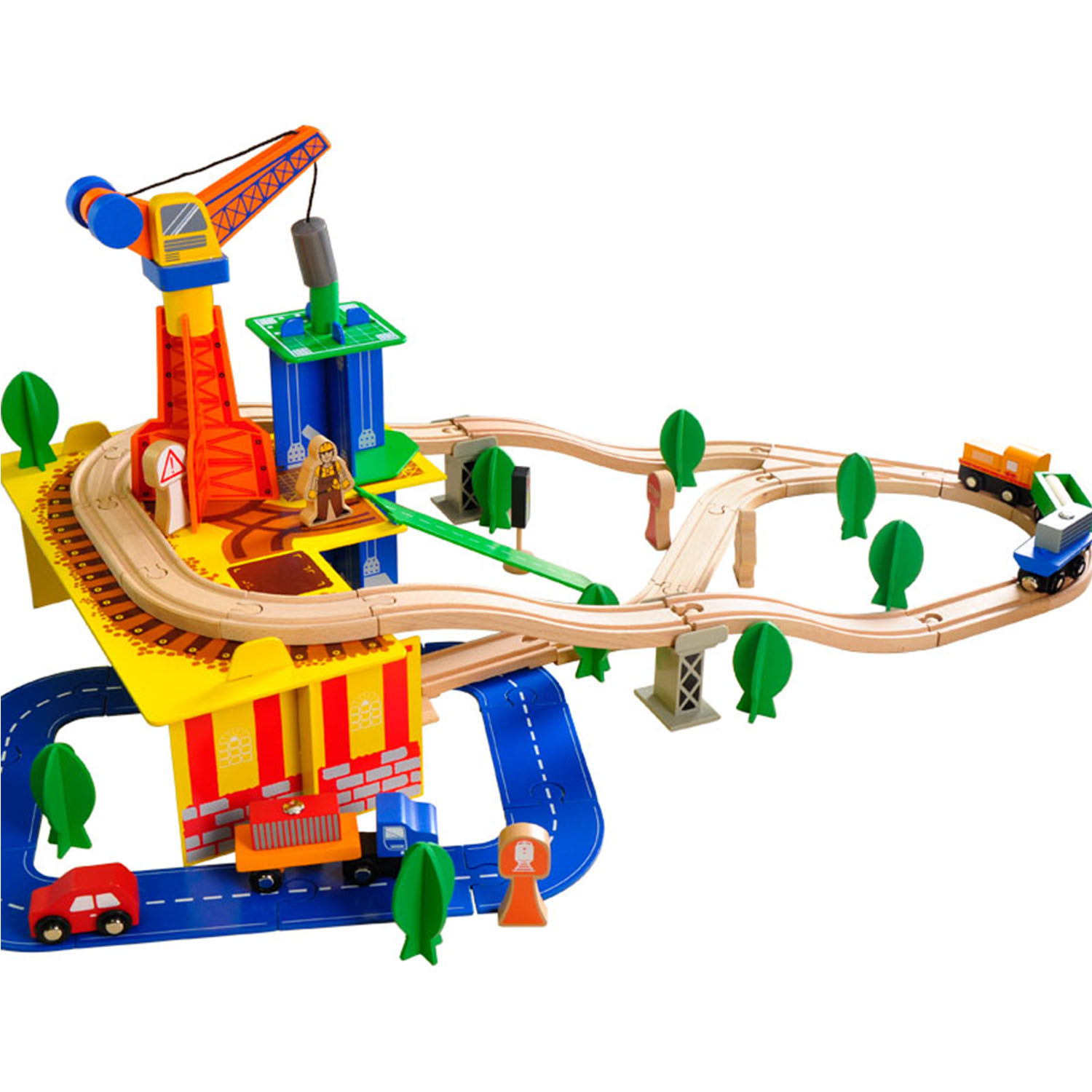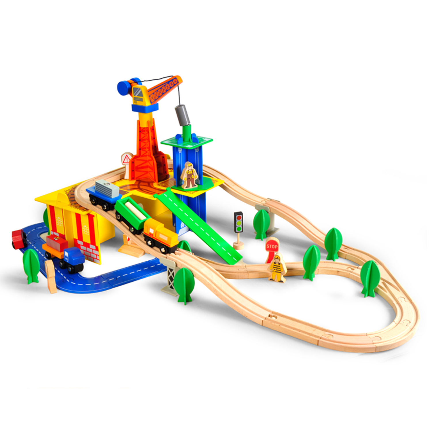 - Product Description: 80pcs wooden toys construction crane train track set railway