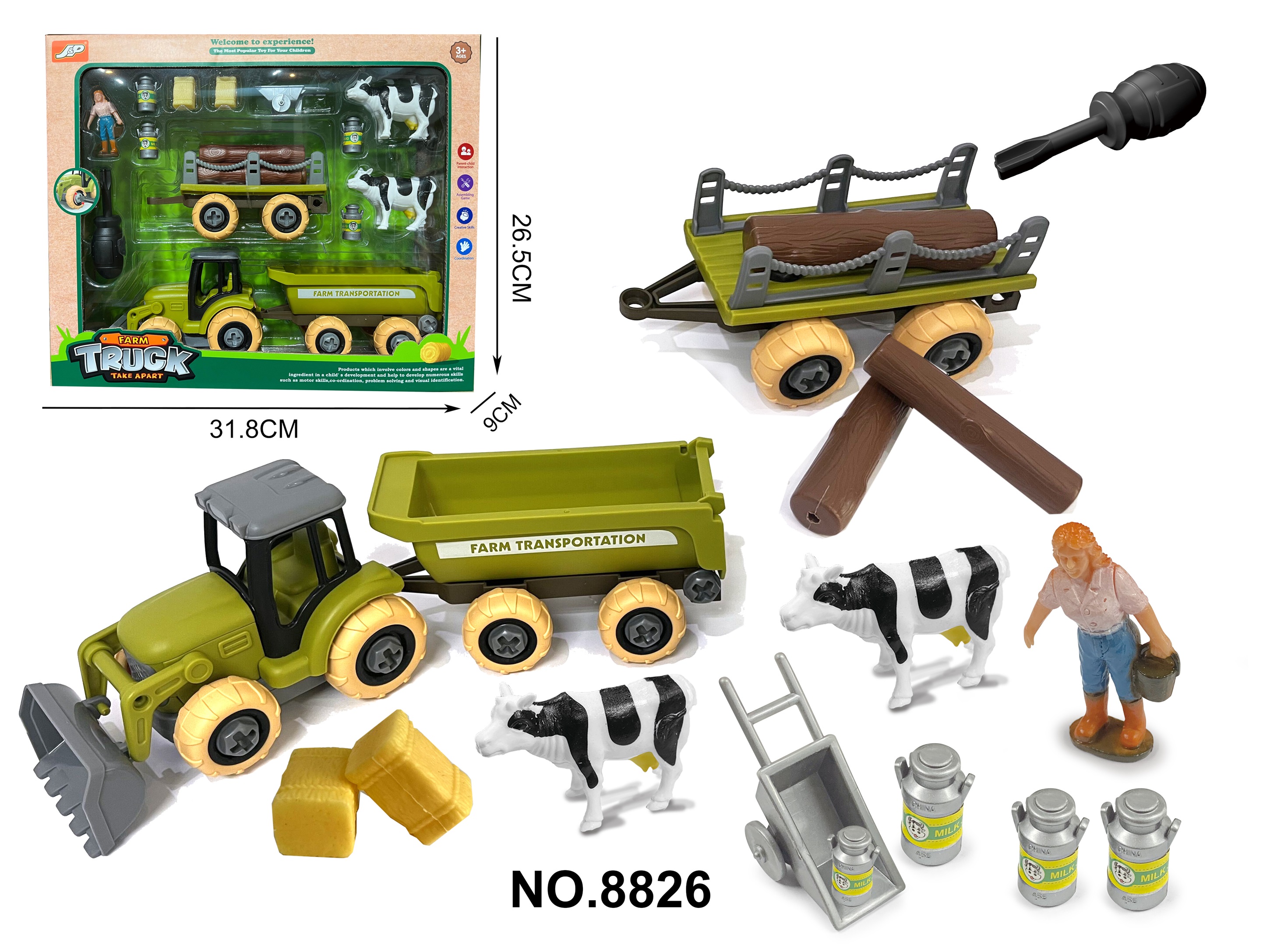 8826 plastic farm truck, DIY toys 3+