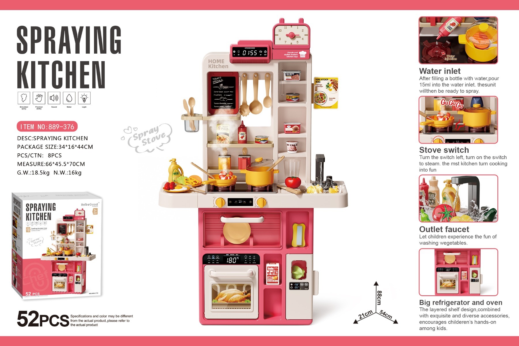 889-376 88CM SPRAY KITCHEN DELUXE VERSION (WITH SPRAY, ACOUSTO-OPTIC SOUND EFFECT, WRITING BOARD, WATER OUTLET FAUCET) 69PCS, NOT INCLUDING 3 * 1.5AA