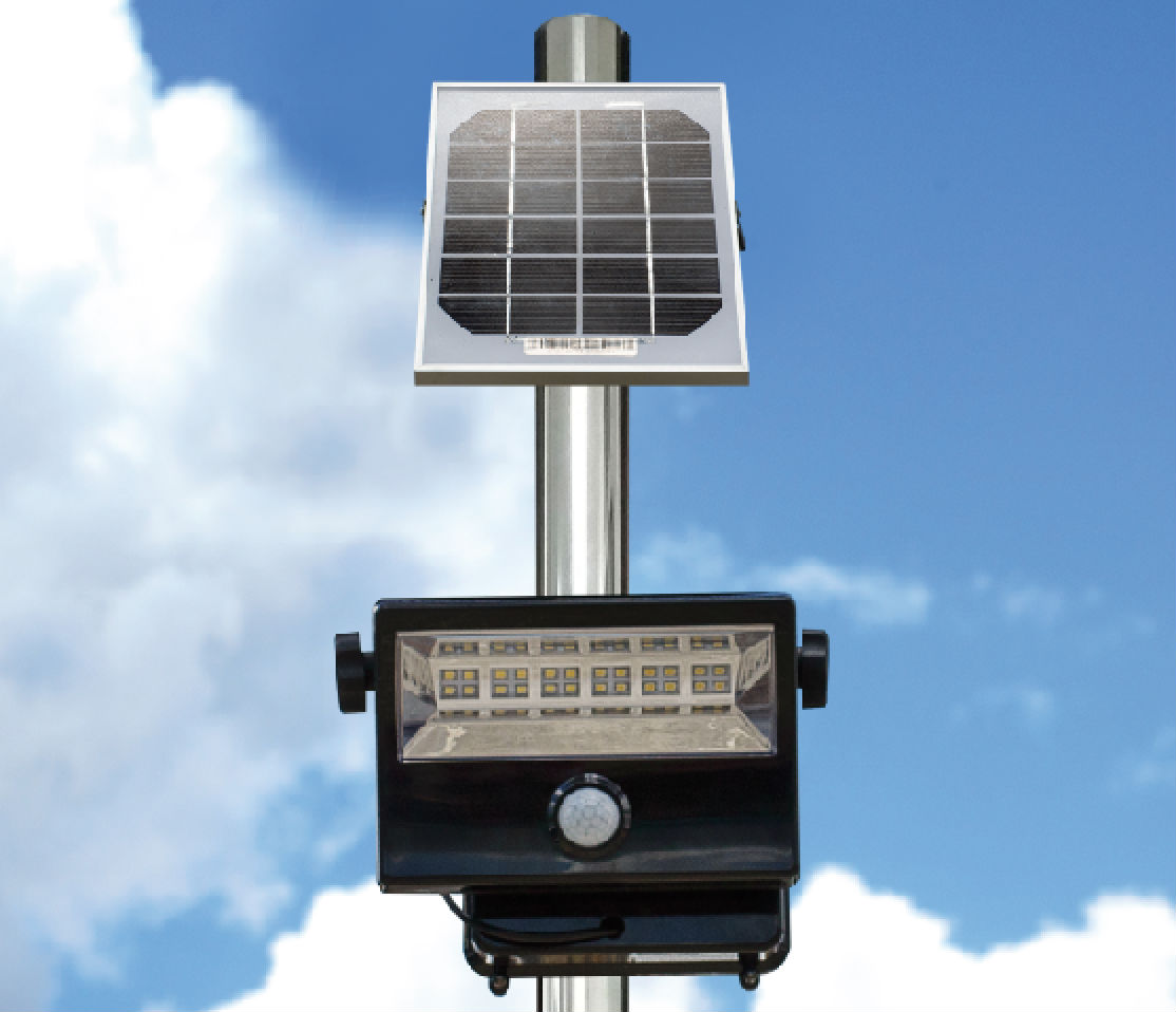 The Mightylite Solar Digital LED Floodlight is constructed with an impact-proof UV stabilized polycarbonate facing, tough aluminum body and is weatherproof (certified to IPX6) and highly resistant to birds, insects and extreme weather conditions. The compact polycrystalline silicon solar panel is designed to operate in hot environments continuing to charge the battery in temperatures as high as 50°C.