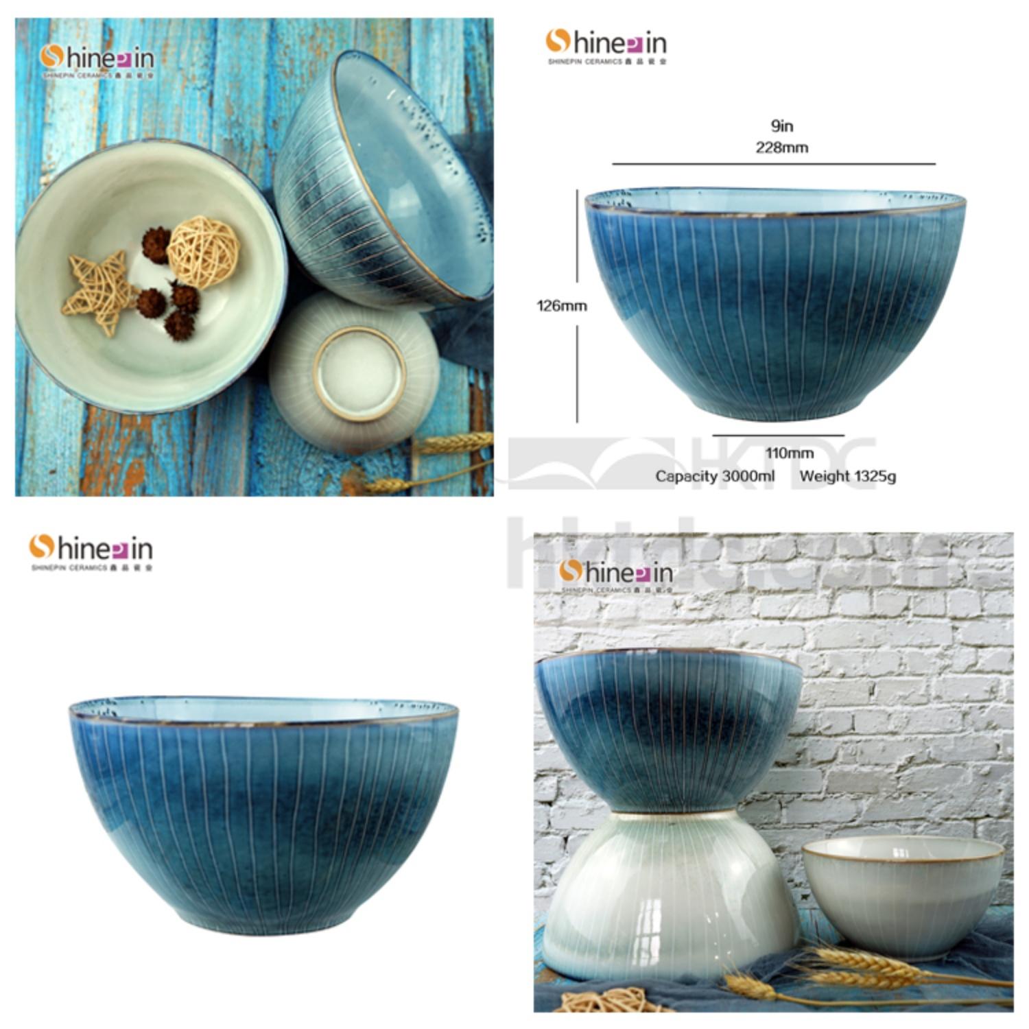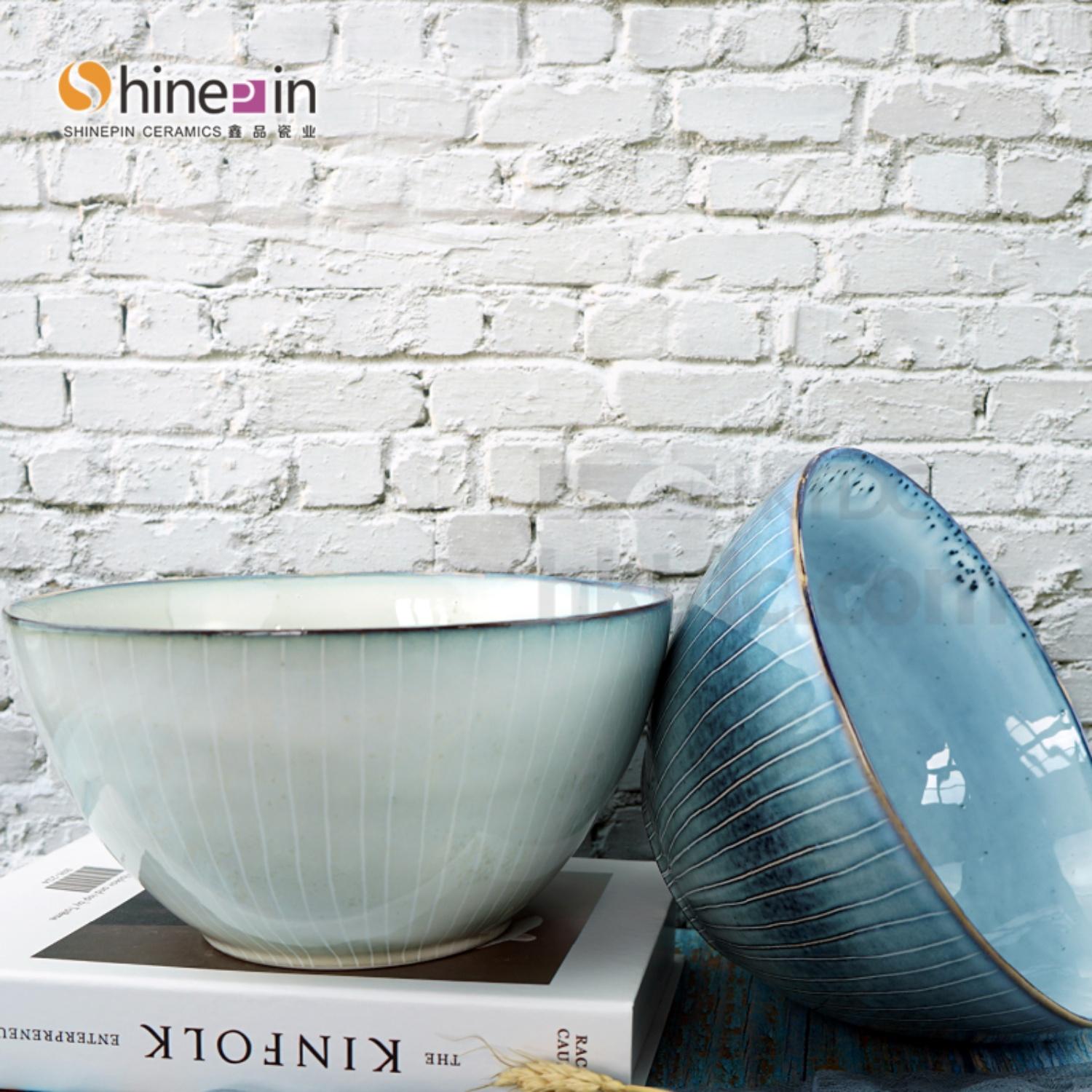 Factory Direct Wholesale 9 Inches Reactive Ceramic Soup Bowl Hotel Large Ceramic Salad Mixing Large