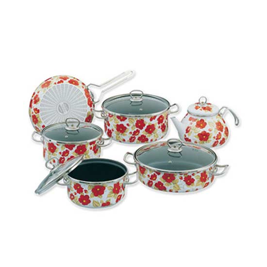 The 9-piece cookware set touts a well-executed design with elegant floral patterns all over. The porcelain enamel exteriors exude a sense of sophistication with promising quality, while the 3-layer non-stick material coated interiors ensure easy cleaning. This 9-piece cookware set makes a must-have for every kitchen.