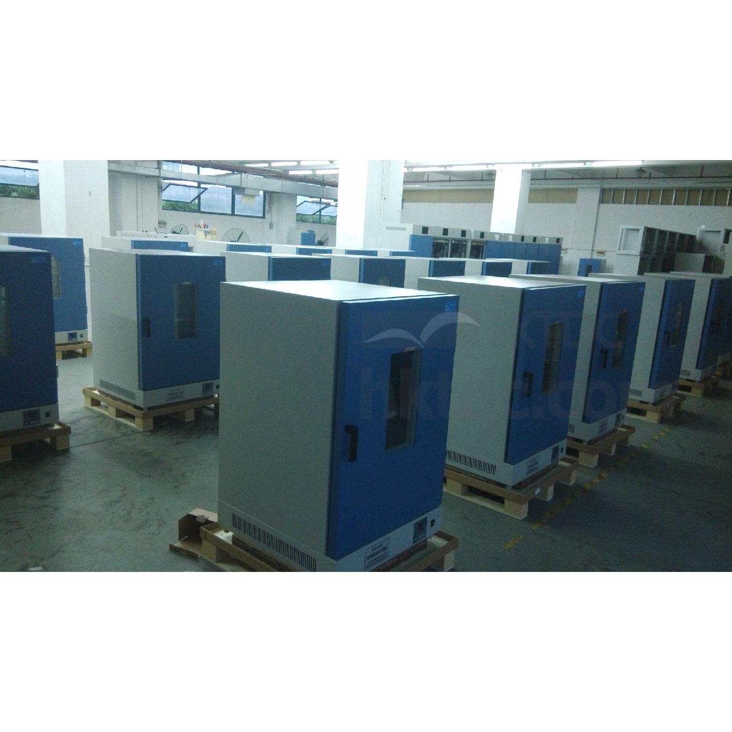 Introduction: Oven is a series of product having 5 different specifications, inclusive of 30L, 50L, 70L, 140L, and 240L. The outer casing adopts premium sheet with surface baking finish; the workroom adopts mirror face corrosion resistant plate and is provided with two layers of shelf board made of stainless steel wire inside; the intermediate layer is filled with extra fine glass wool for thermal insulation. The oven door has a sight window made of double-layer toughened glass, through which the articles inside the oven can be clearly seen. The connection between the workroom and oven door is provided with heat resisting silicone rubber seal ring, which can ensure the sealing between the workroom and oven door. The oven power switch, power indicator, air damper adjusting knob, and temperature controller and other operating elements are all located on the front control panel of the oven, and on the left front side of the oven. The heating constant temperature system inside the oven is mainly composed of the motor equipped with a centrifugal impeller, electric heater, rational duct structure and temperature controller. When the drying box and draught fan are powered on, the motor will operate and upwards discharge out of the duct the heat produced by the electric heater at the rear end of the oven ; the heat will pass through dry articles in the workroom and sucked to the draught fan again. This cycle will be continuous to make even the temperature inside the workroom. The intelligent temperature controller can adjust the wind speed automatically. During temperature rising, when the motor runs at a high speed and the temperature approaches a constant value, it will be adjusted to slow running automatically, so as to avoid the problems caused by high wind speed. Users can also cancel this function through simple operation. The damper regulator can regulate the air capacity in and out of the oven by switching the adjusting knob of air damper.