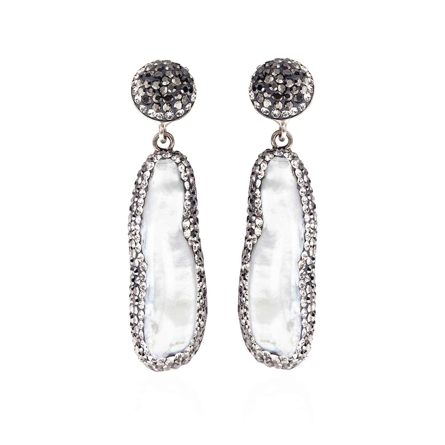 Style: Avance pearl/crystal pave setting earrings material: fresh water pearl, crystals and .925 sterling silver size: medium drop earrings stone: pearl and crystal