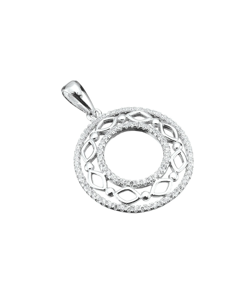 Round Shape Design Silver Pendant Set With Cubic Zirconia,