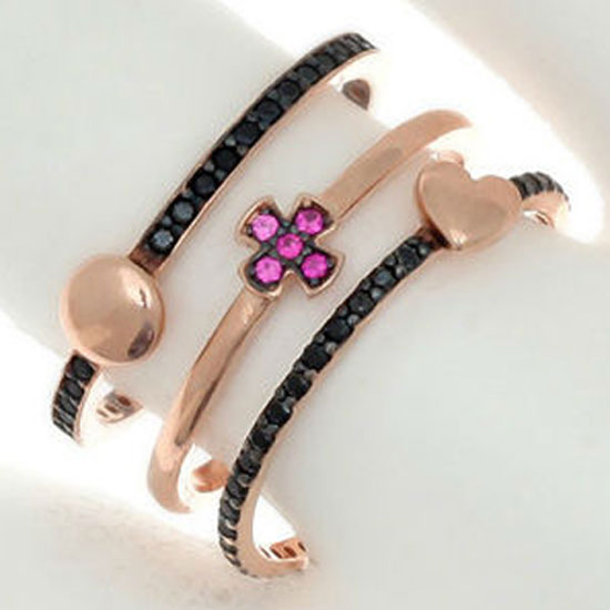 This is a dainty ring made of 925 sterling silver with 1-micron rose gold plating. It boasts a trendy and unique design. This stunning ring surely is a great item for adding some glamor to your slender finger.