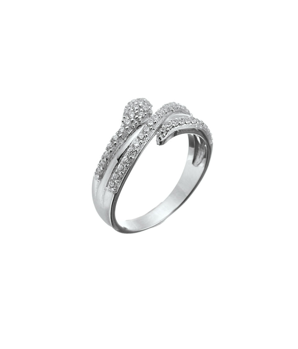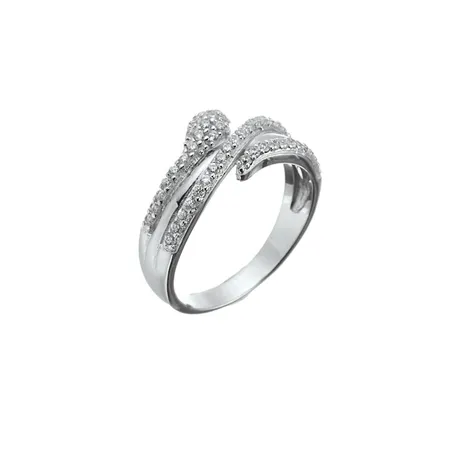 925 Silver; Stone: Cubic Zirconia; Plating: Rhodium Plating; 925 Silver Ring With Snake Design Which Set With Clear Cubic Zirconia In Rhodium Plating