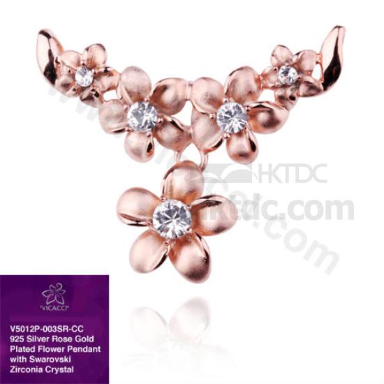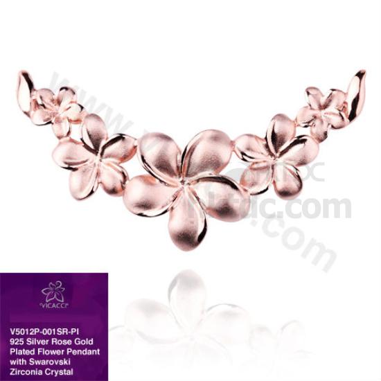 925 Silver Rose Gold Plating Flower Pendant with Swarovski Zirconia Crystal