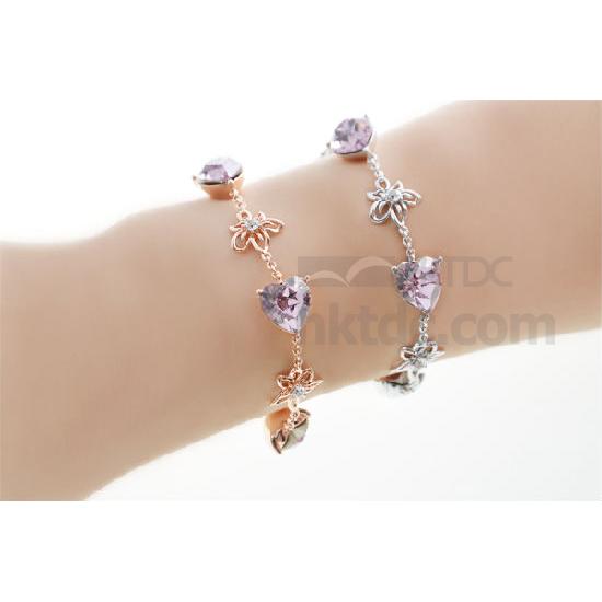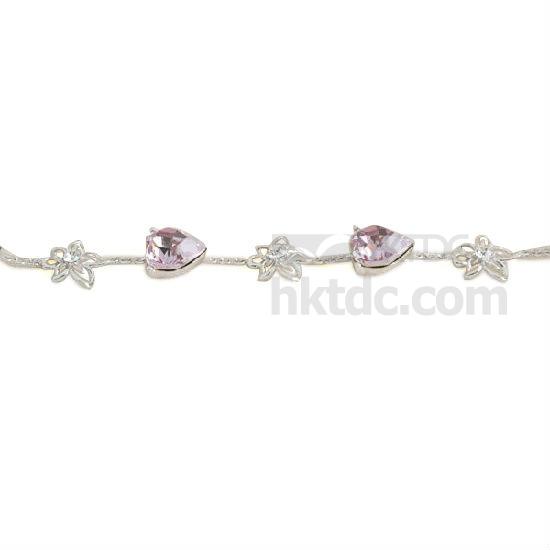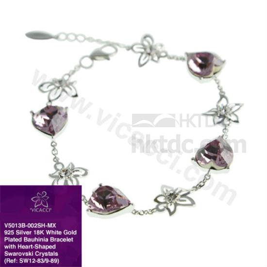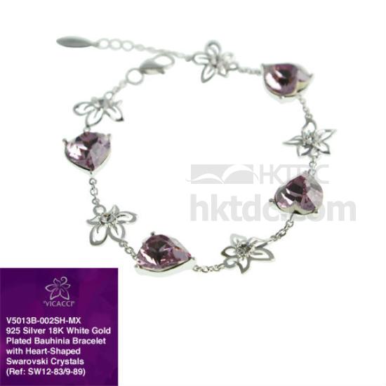 925 Silver Vicacci Bauhinia Flower Bracelet with Heart-Shaped Swarovski Crystals