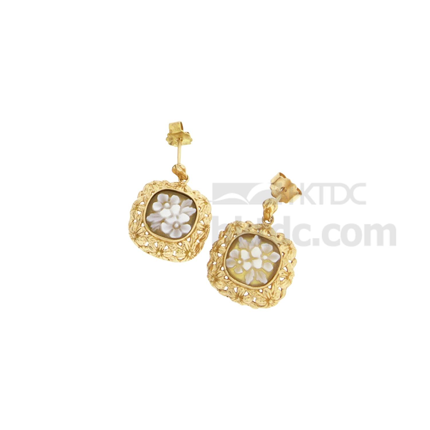 Embrace an invigorating look with these gorgeous earrings. The enchanting piece signifies the arrival of spring with a dynamic flower cameo blooming over a neat row of florets to crown your look with the teeming energy of spring. Assembled with a stud closure, it promises to stay on ear securely throughout the day.