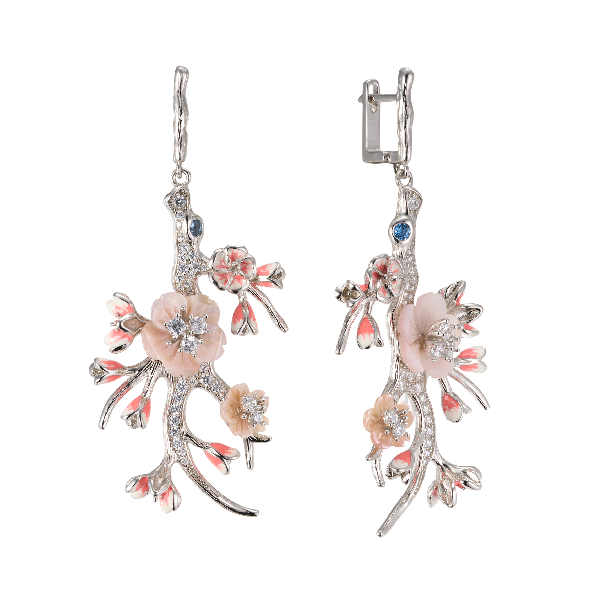 CZ/ Shell /Enamel / Rhodium plated /Earring