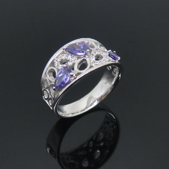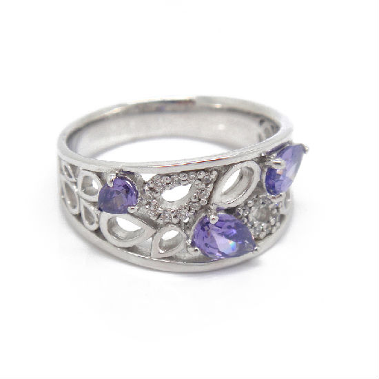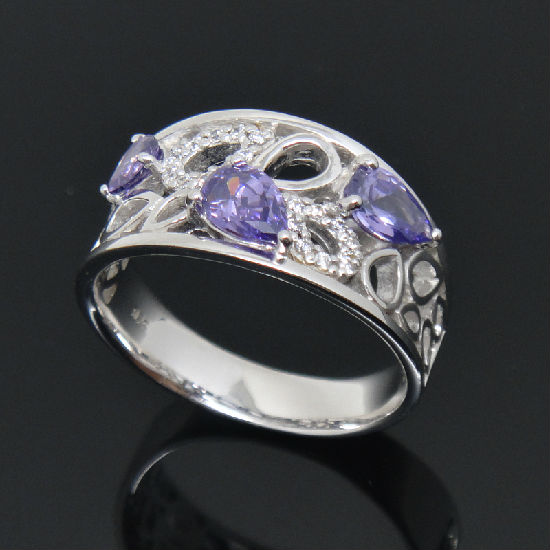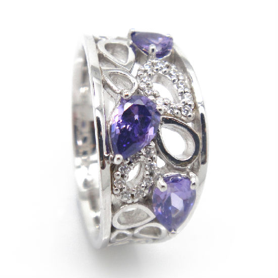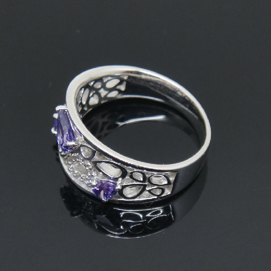 925 sterling silver purple crystal ring with special, pure and fresh design.