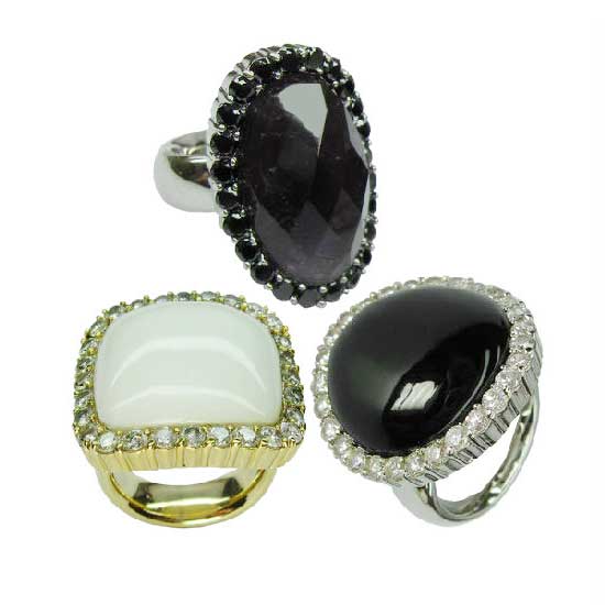 - 925 sterling silver/brass ring, black agate with clear cubic zirconia.