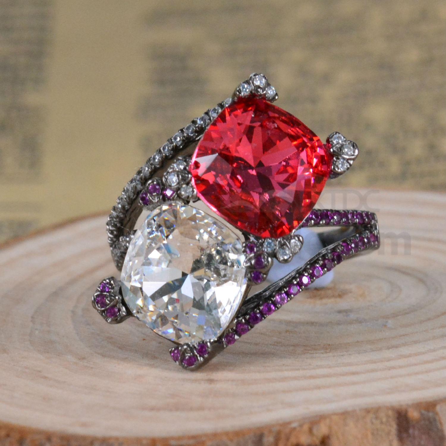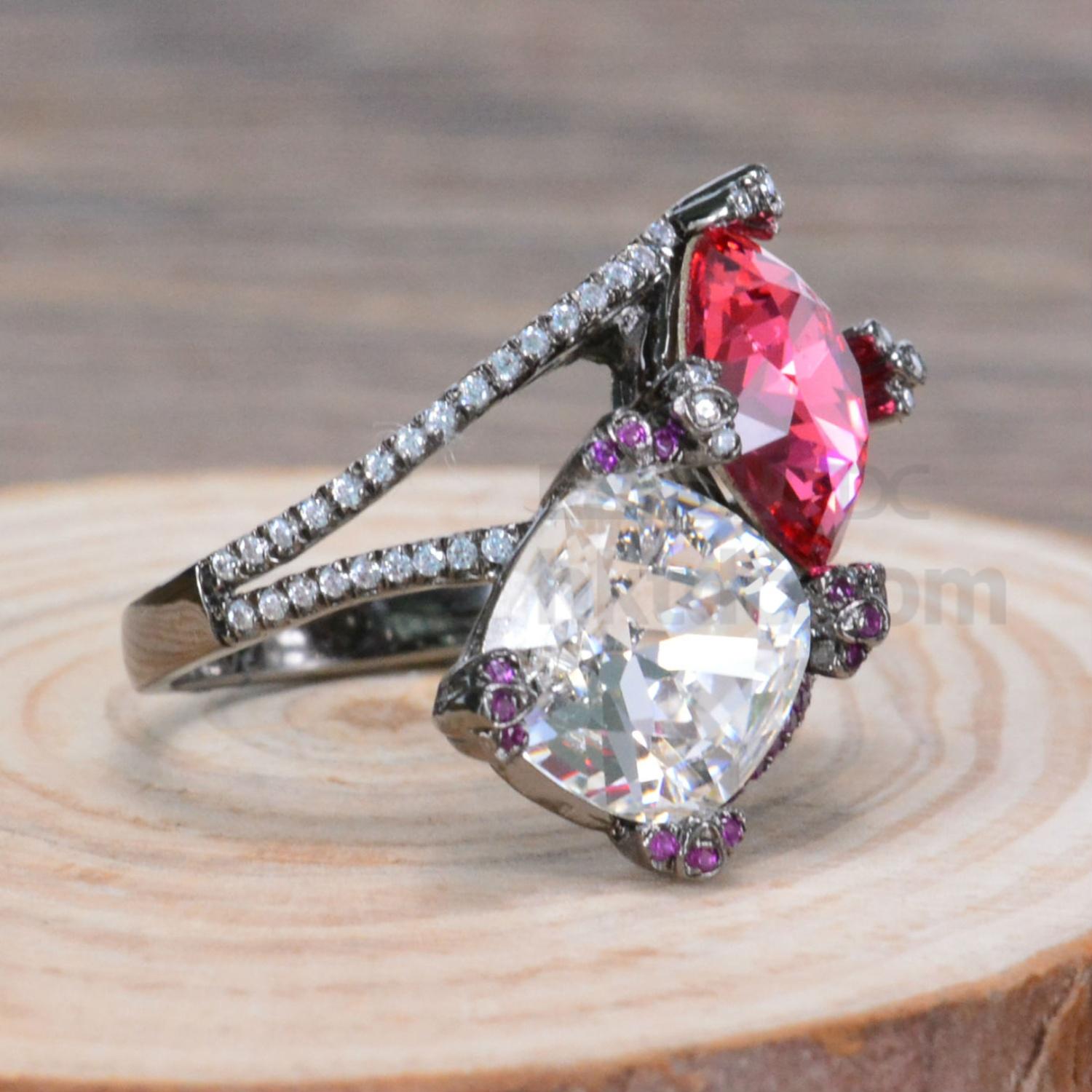 925 Sterling Silver Swarovski Red and White Cushion Crystals Ring