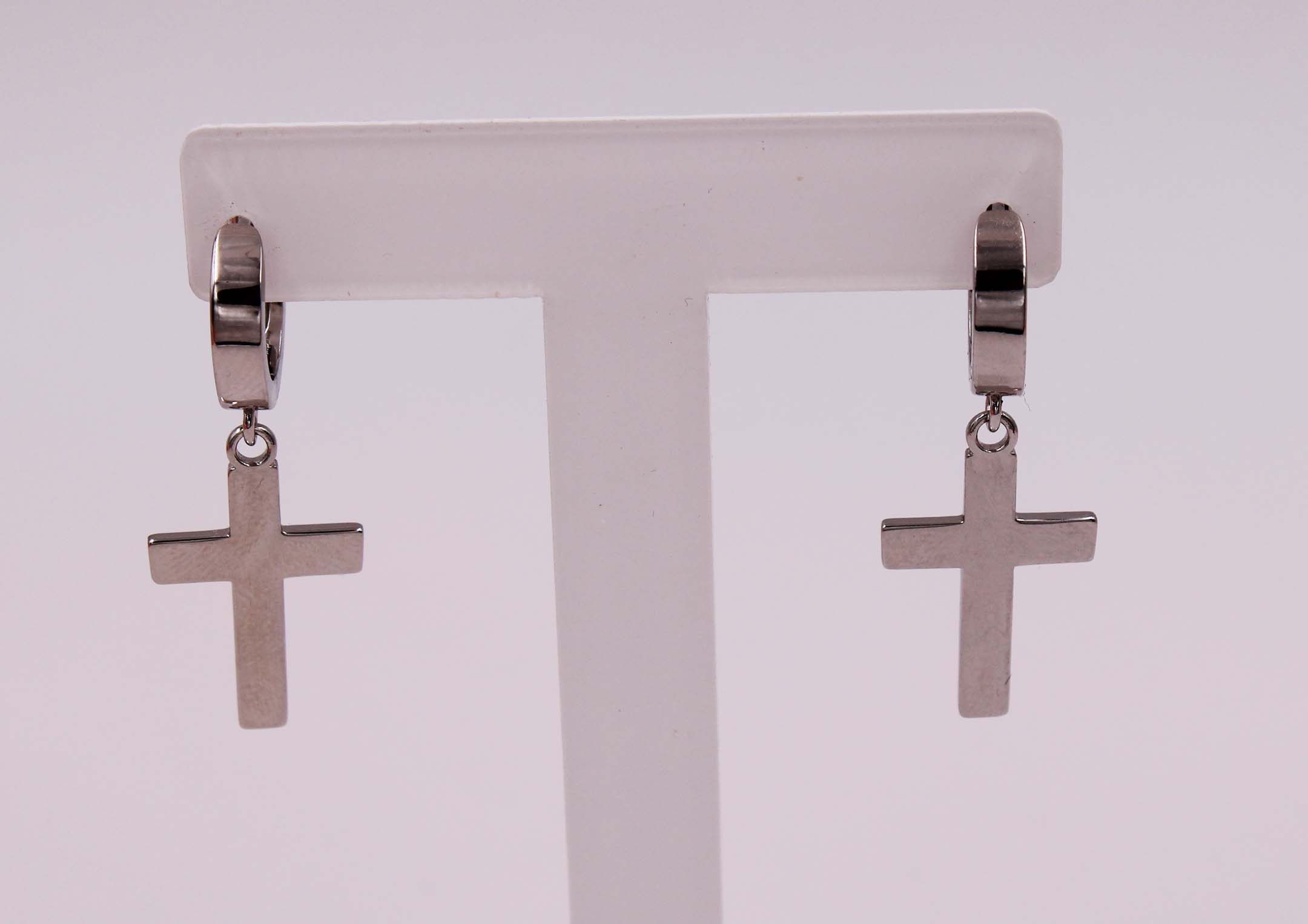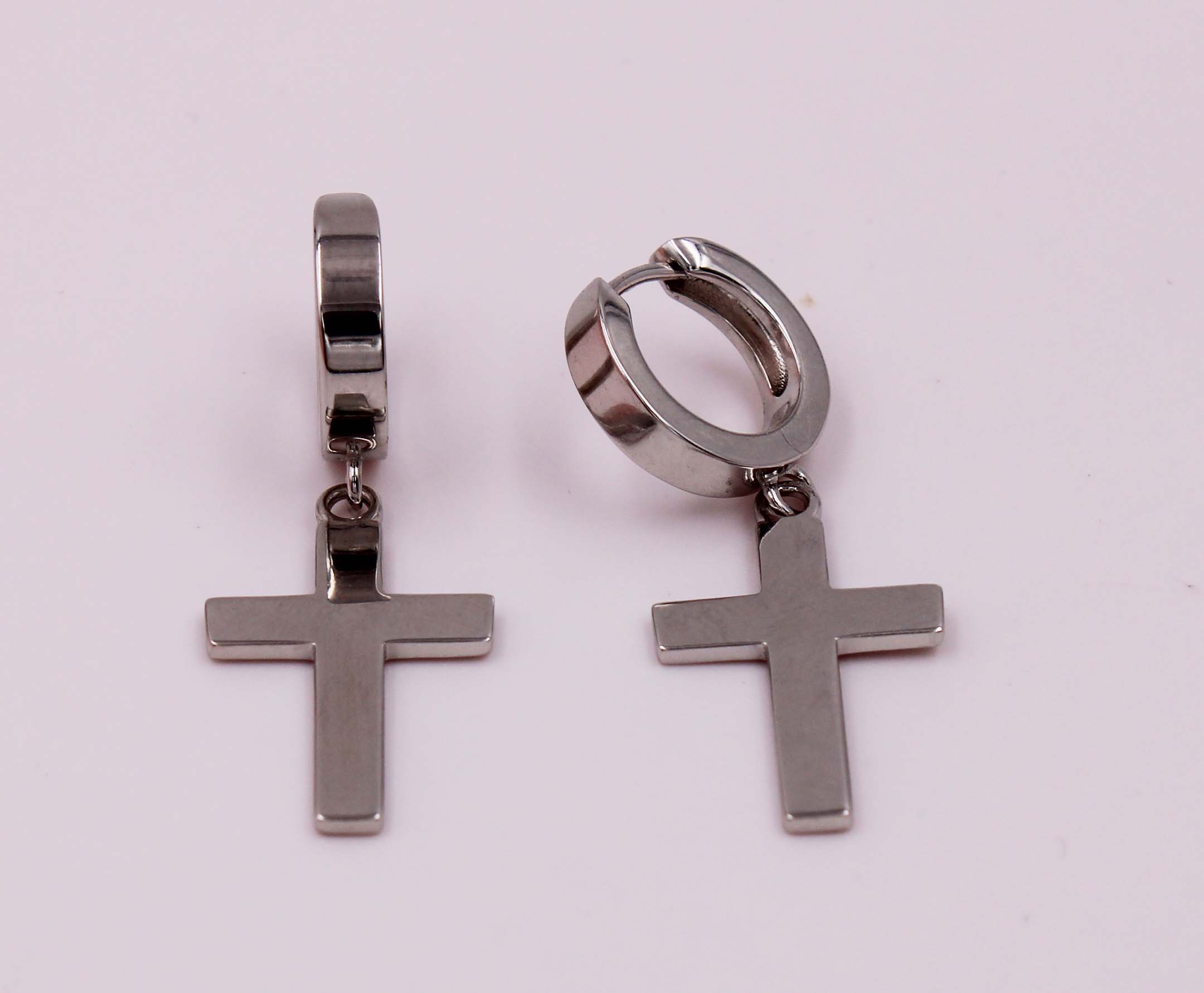925 sterling silver hook earring, the size of the hook is 14mm and the length from the hook earring to the cross is about 36mm, all 925 s/s material are rhodium plated, free of nickle.