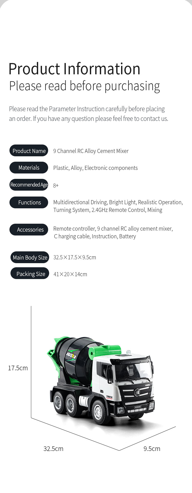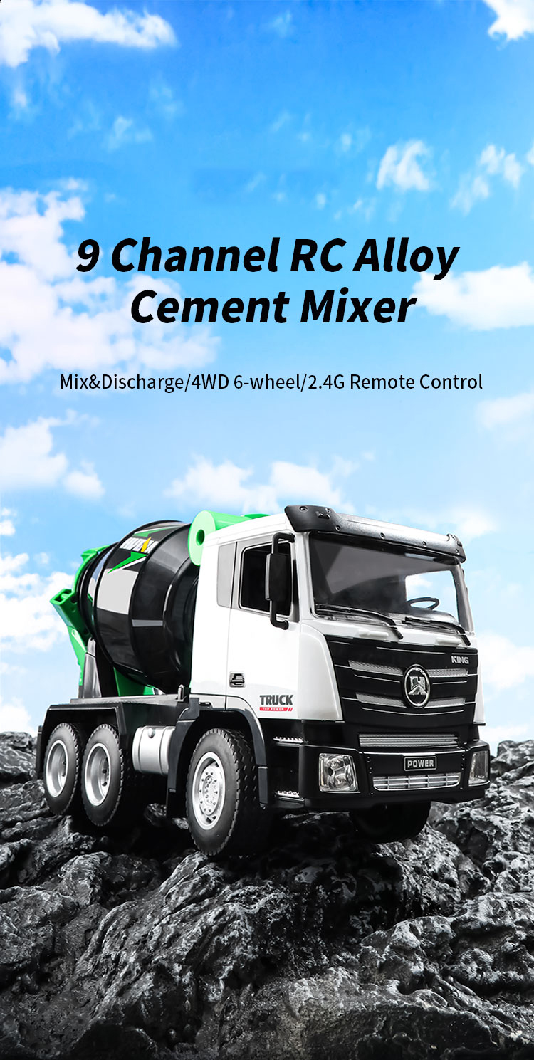 The r/c engineering truck mixer was made of high-quality alloy, non-toxic ABS plastics materials.