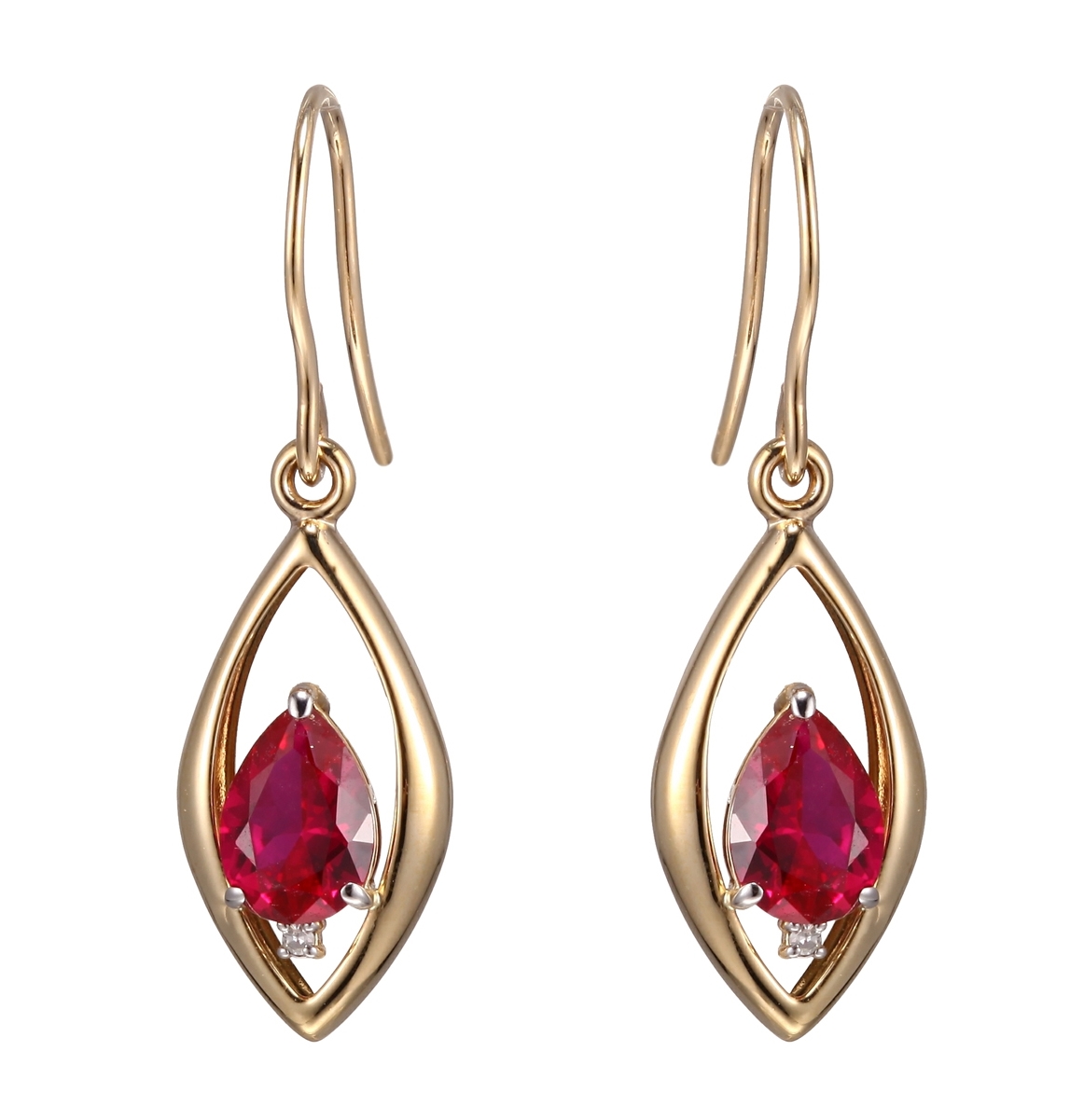 9K YELLOW GOLD CREATED RUBY DIAMOND EARRINGS