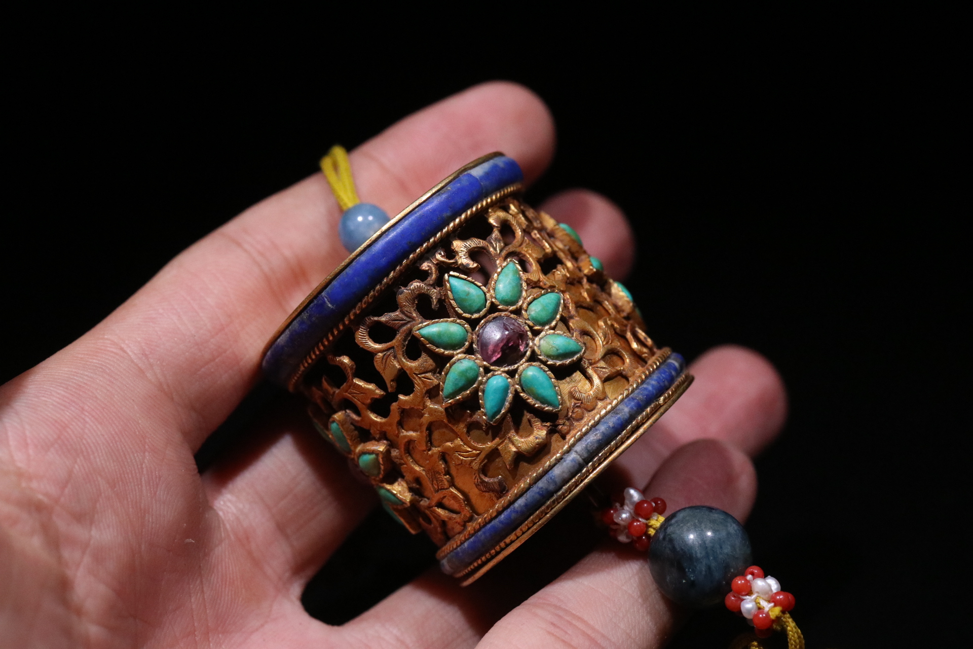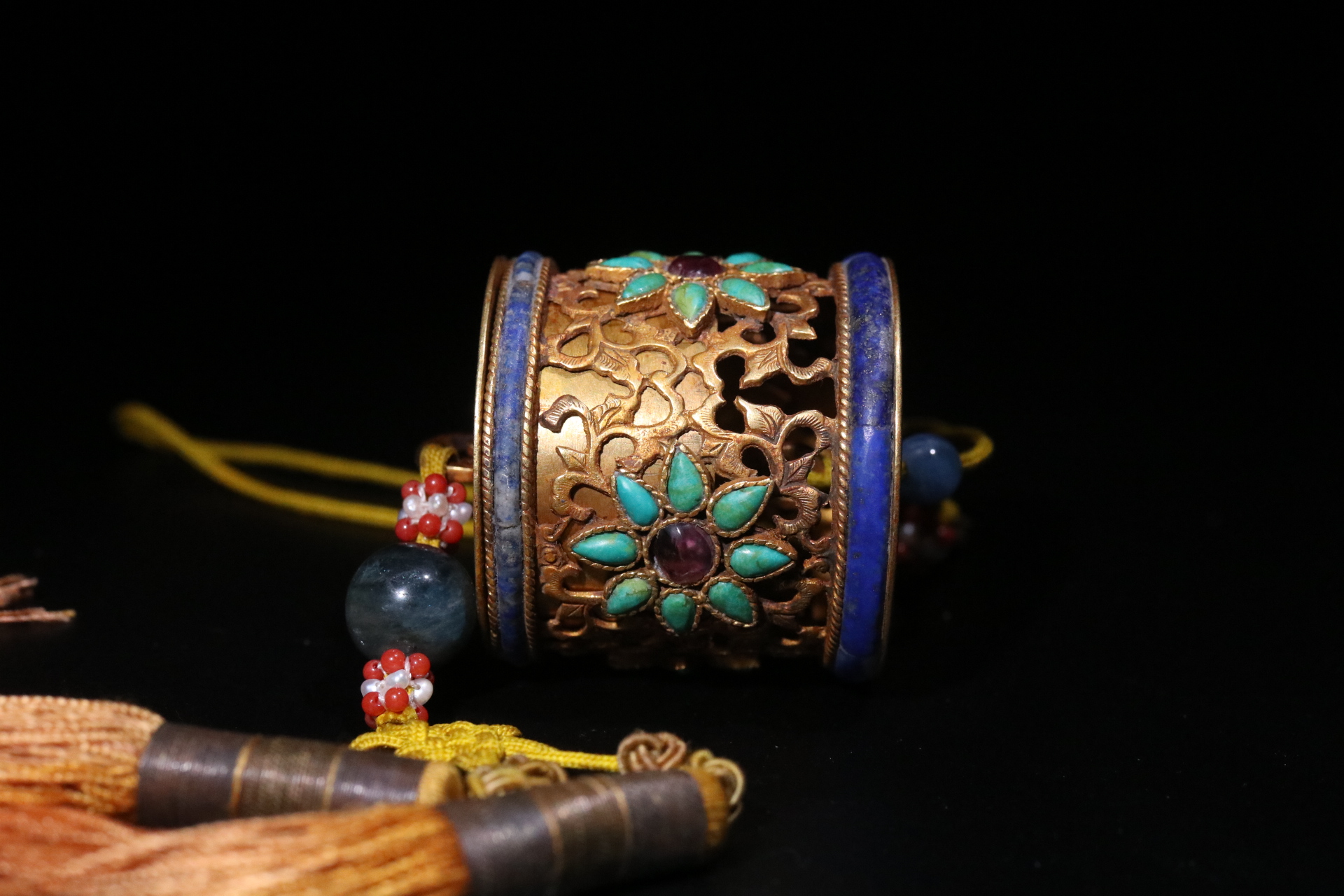 A Fine Gourd Shaped Gold Plated Silver Sachet